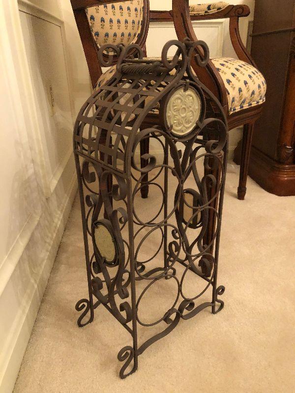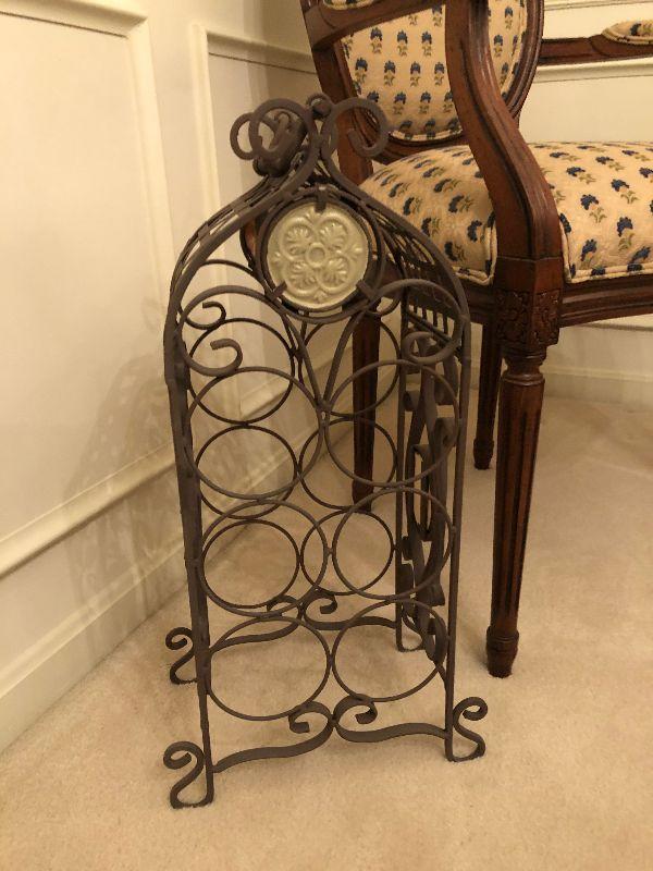 Formal Carved Wood Ethan Allen Arm Chair (made in Italy), and a Decorative Metal Wine Bottle Holder. Please note that there is a matching chair in Lot 4.