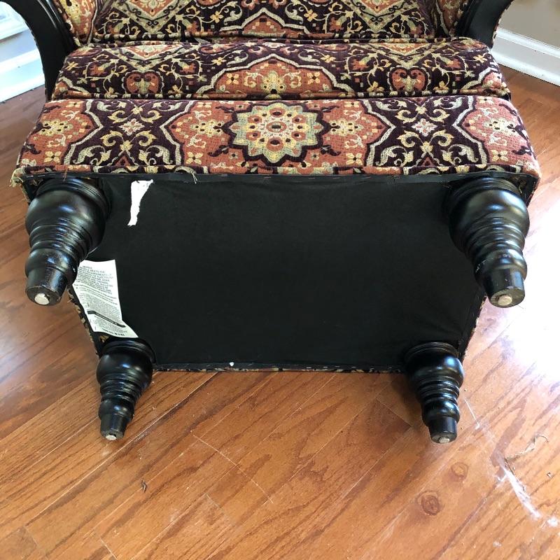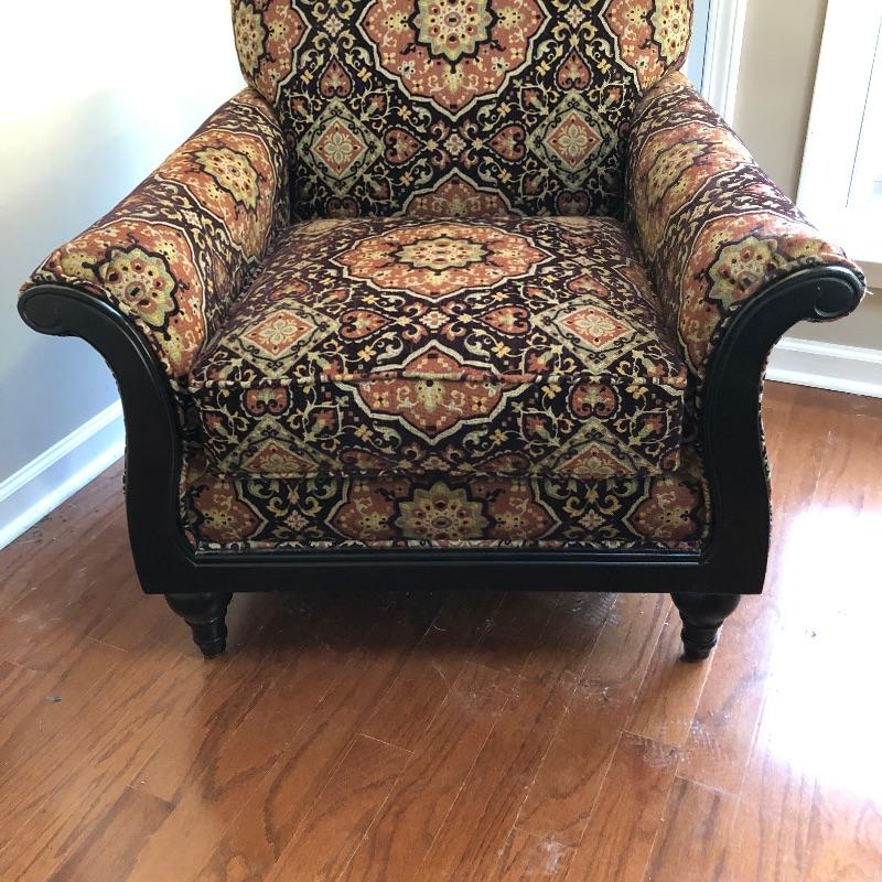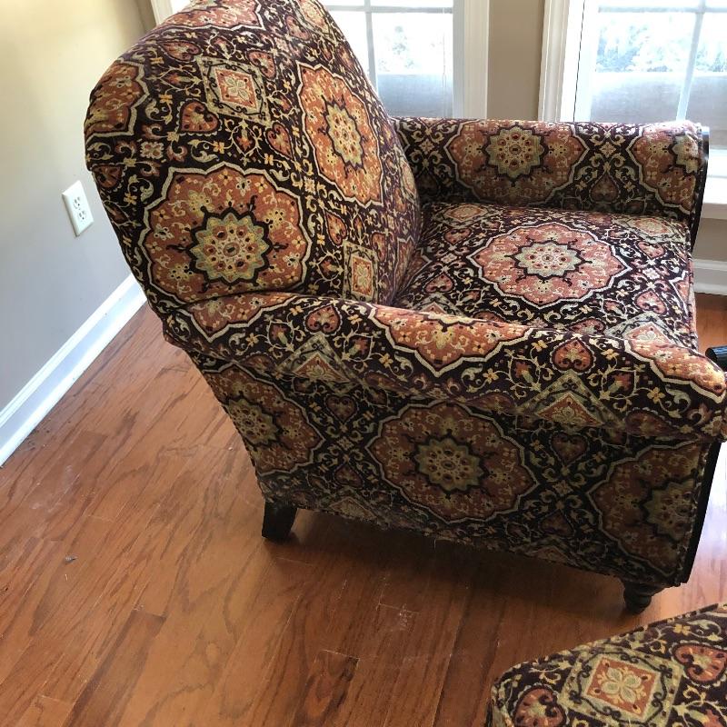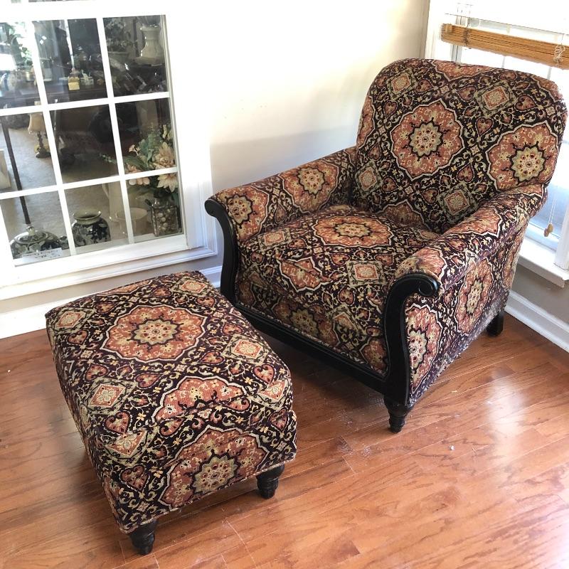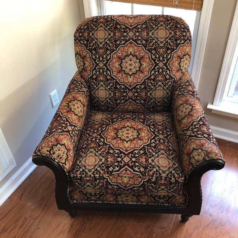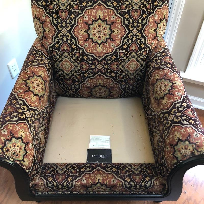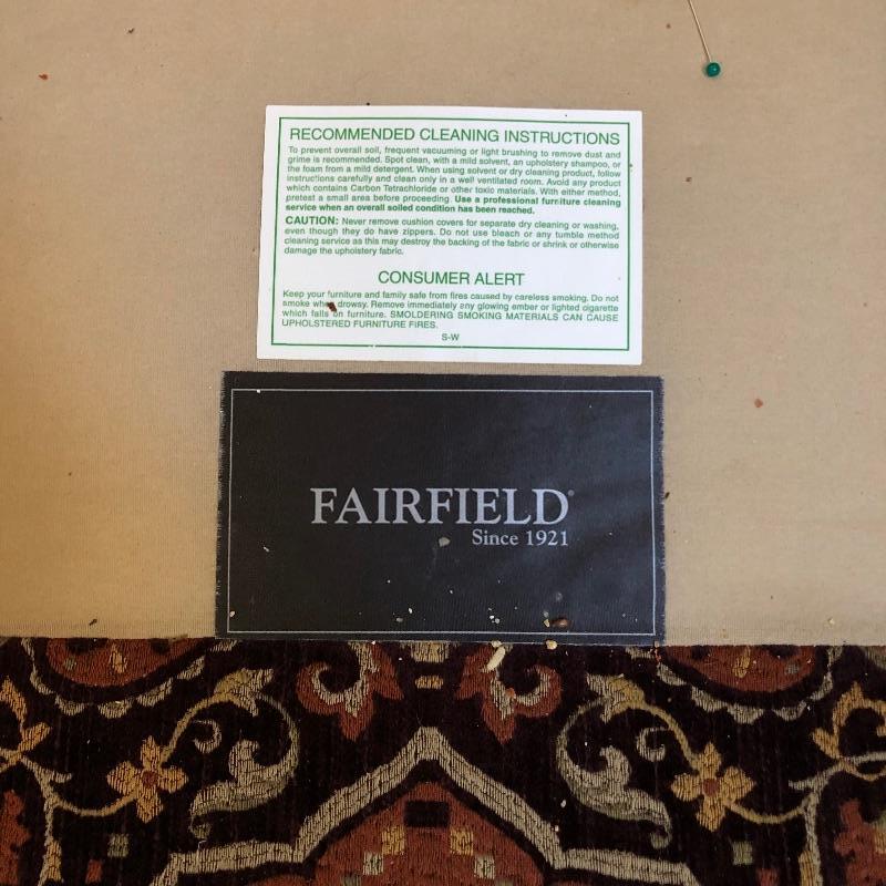 This Fairfield lounge chair and ottoman are stunning. It’s jacquard style upholstery is a pleasing palette of browns and olive green. It comes with a matching ottoman and an extra cushion. There is another Fairfield lounge chair in lot 3.