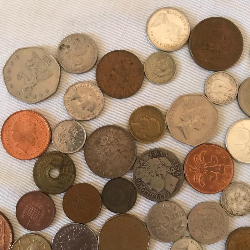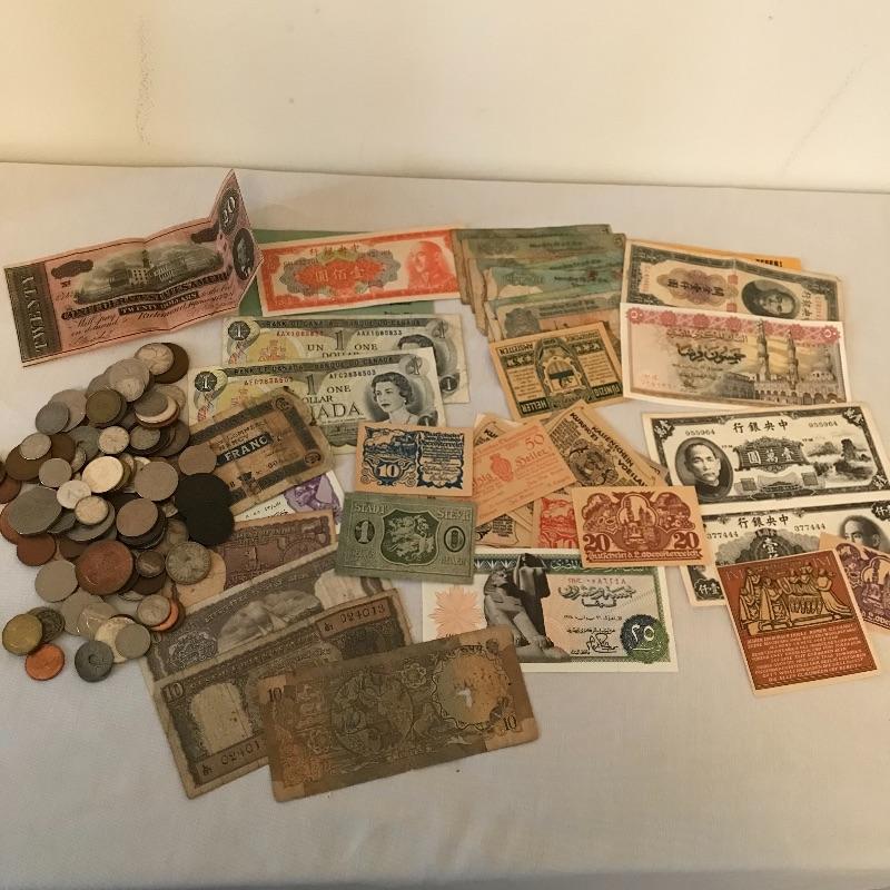 Large international collection of coins and notes. Collection includes Confederate note, new and old coins and more! See photos.