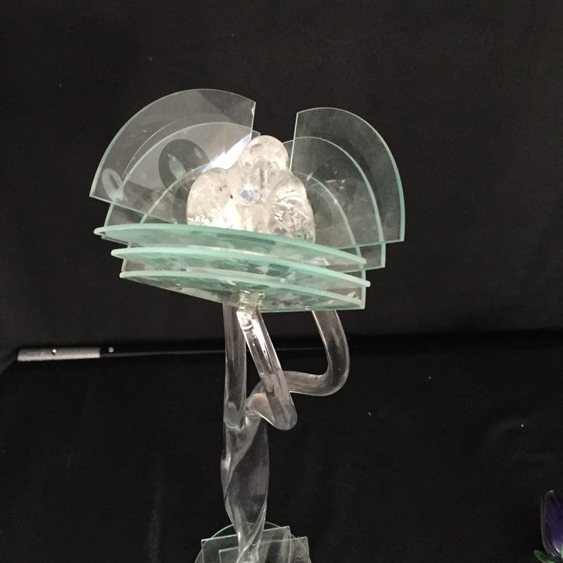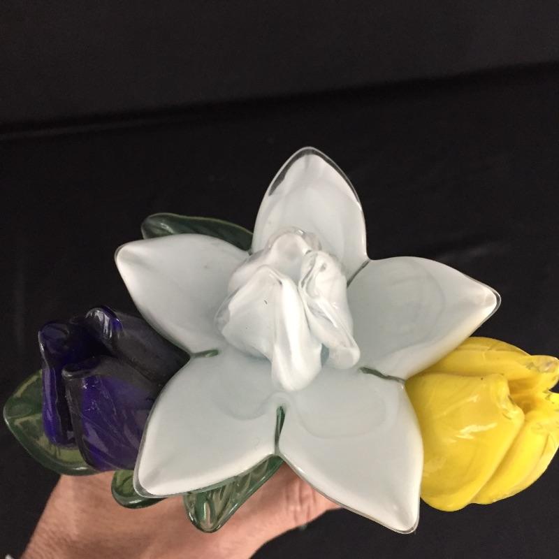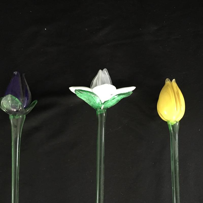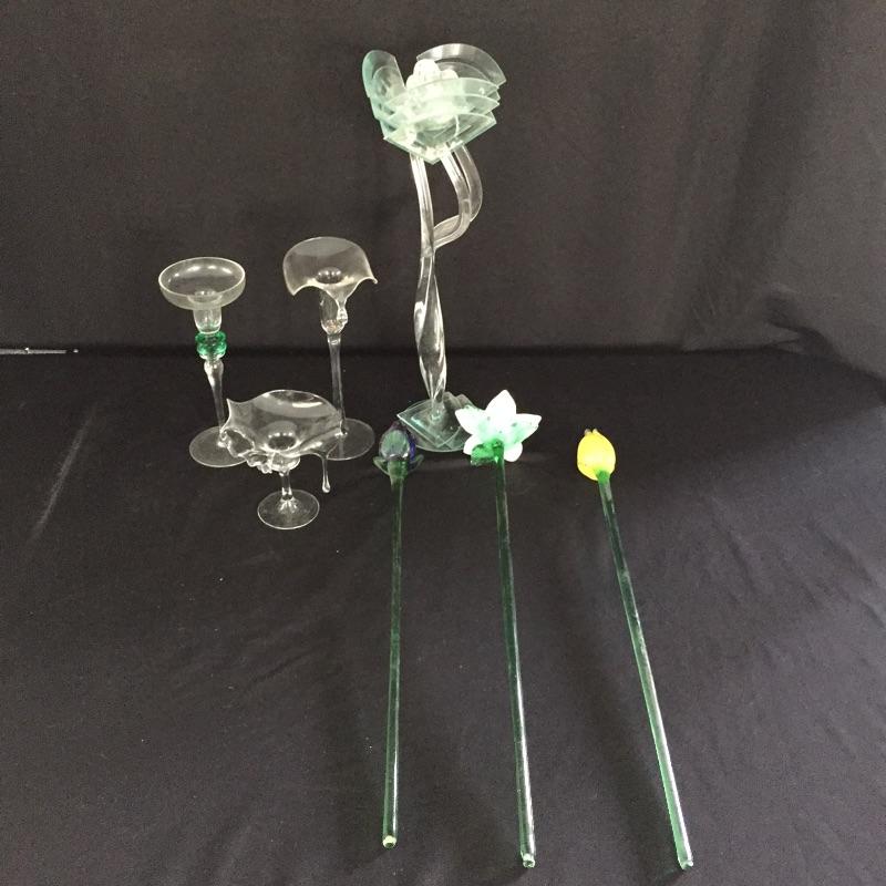 Glass art assortment includes trio of glass flowers and glass art. You don’t need a green thumb for these flowers. Glass Flowers with stems measure 20” long.
