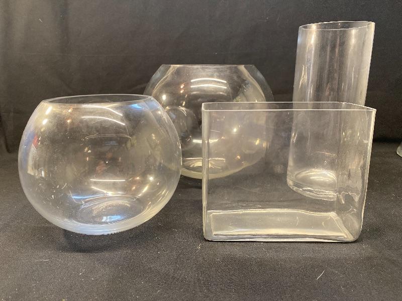 Trifle dish, variety of shape and different size vases, pitcher and more.