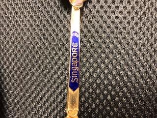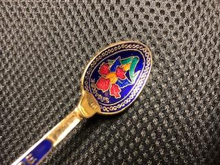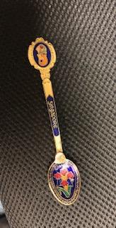 This spoon is in excellent condition with no signs of wear. It is about 5.25" in length and is enamel painted over the gold plating.