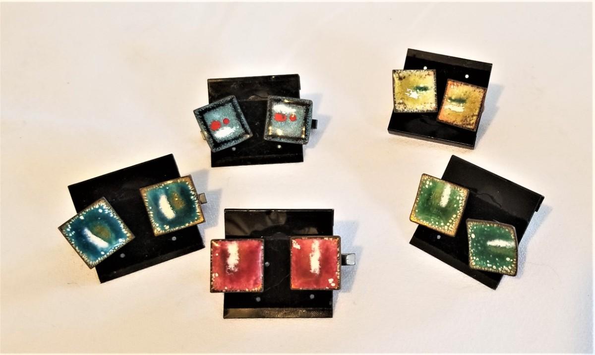 Lot #13 Great Lot of Enamel on Copper Mid Century Cufflinks - 5 sets!