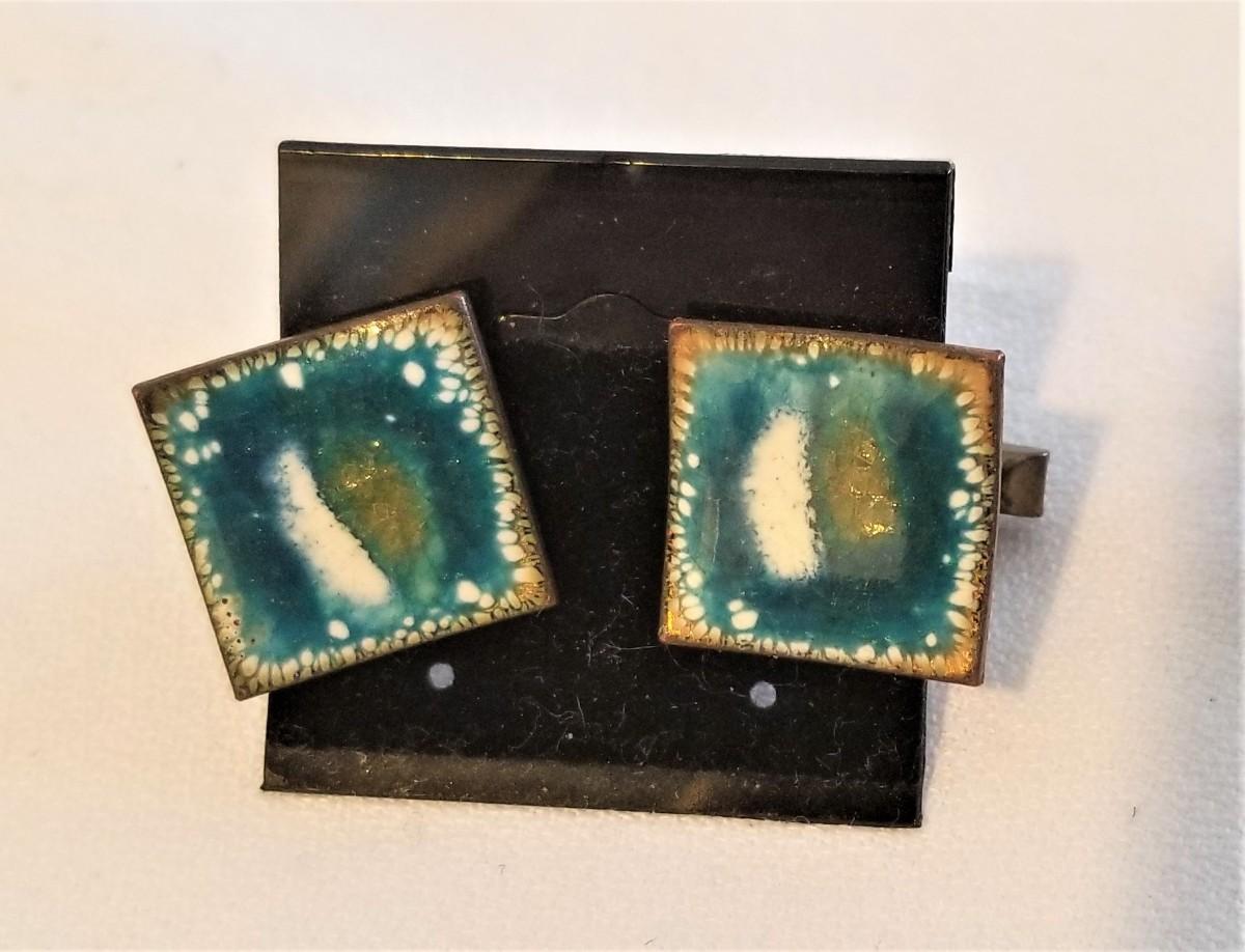 New/old stock - you get all you see here. 5 sets of Mid Century Enamel on Copper cufflinks. All in good vintage condition - great dealer or ebay lot. Each cufflink measures 1/2" x 1/2".
