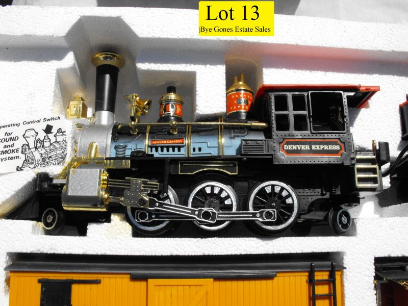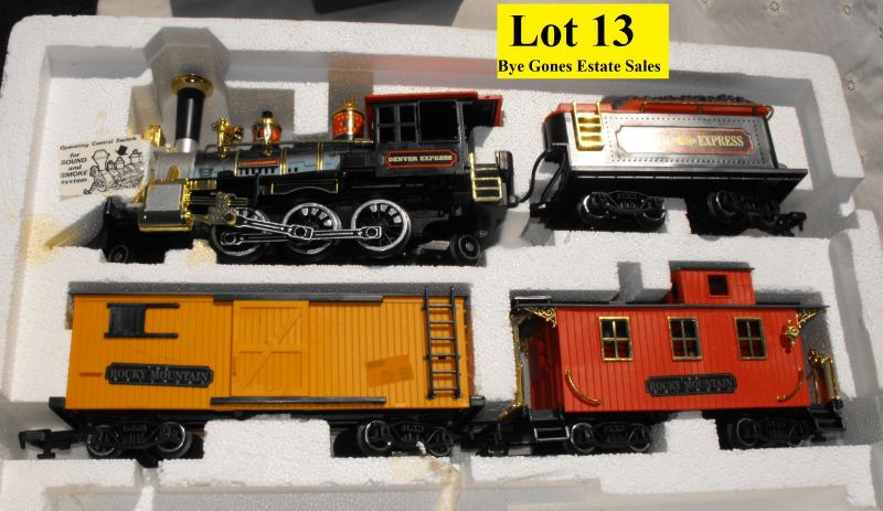 Plastic Locomotive and 3 Train Cars Labeled “Denver Express” and “Rocky Mountain”