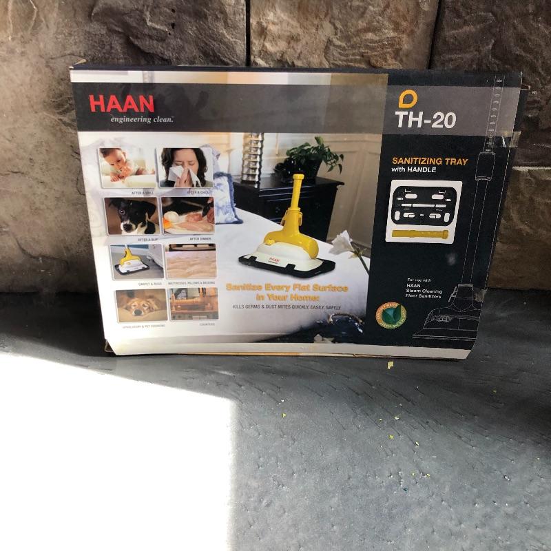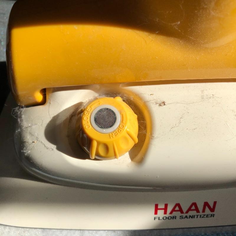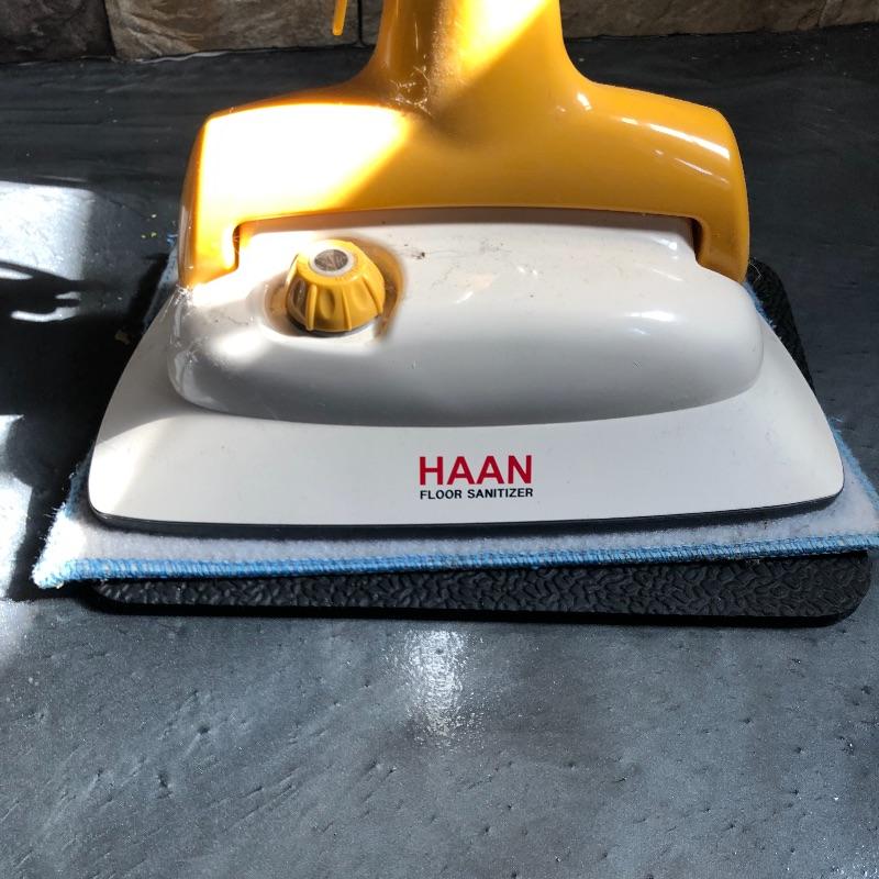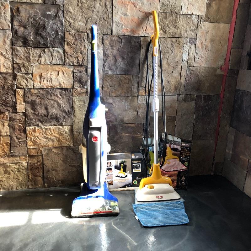A great way to keep your hard floors spic and span. Lot includes Haan floor sanitizer with extra pads and a Hoover Floormate hard floor cleaner. Both item powered on when tested.