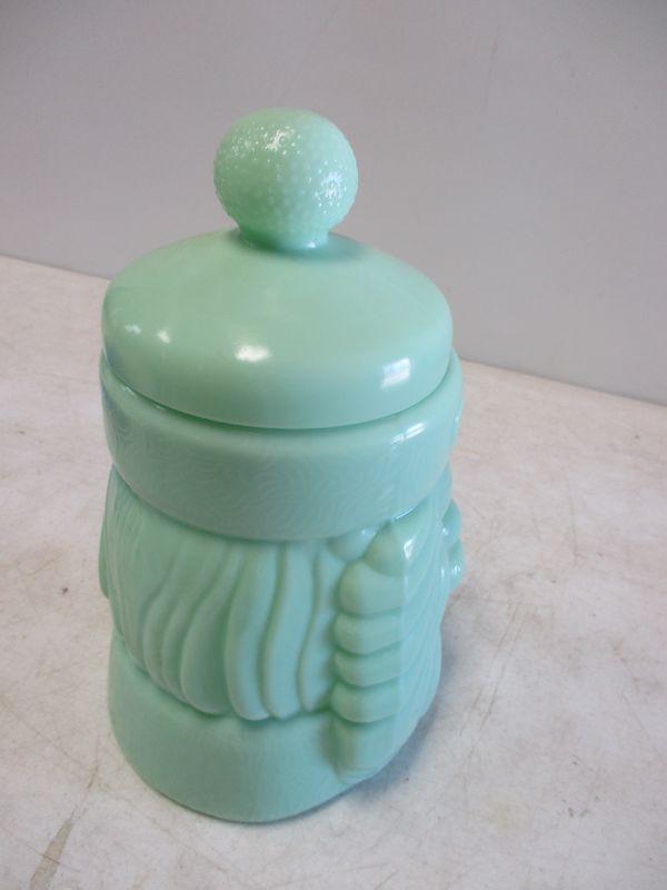 jade Jadeite Santa Claus Cookie Jar Cracker Barrel Glass Christmas