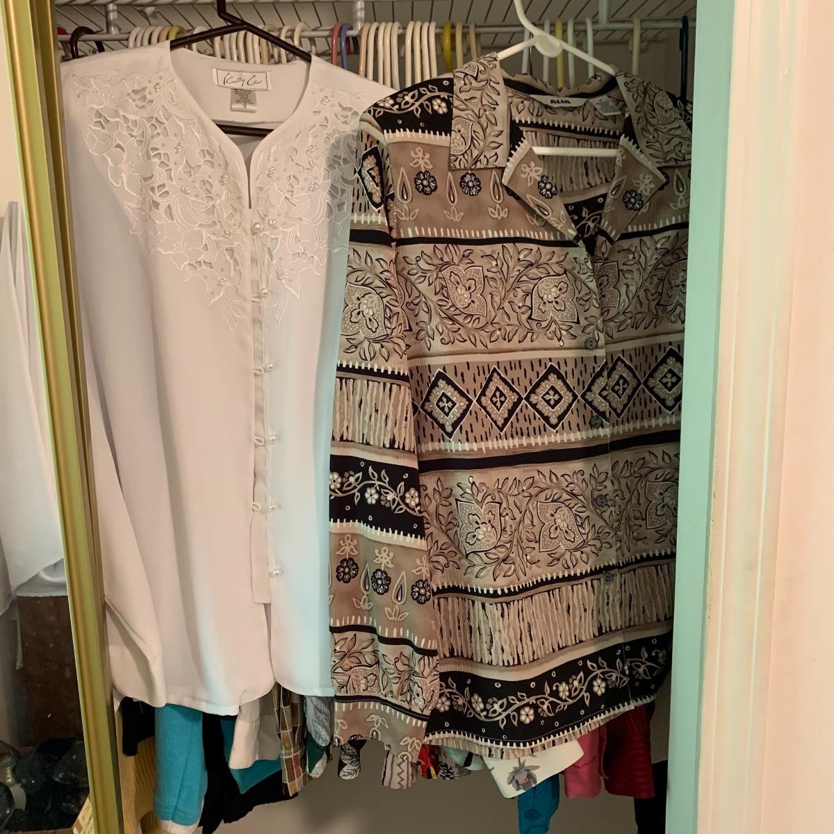 You will find clothing for all occasions from casual to elegant in this collection of 80+ women’s tops, dress sets, sweaters and more. Most are size L/XL and 14/16. There are items in all the colors of the rainbow, many different prints, many different fabrics, and many different styles. Some brands you’ll find in this lot are: Karin Stevens, Halmode Petites, Sag Harbor, Kathy Che, Alfred Dunner, Bentley, Southern Lady, and much more! Local pickup only.
