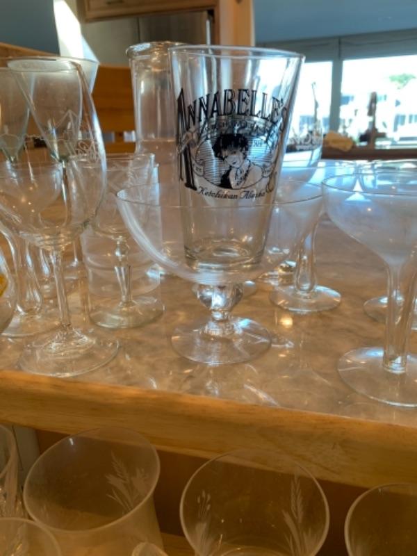 Lot 13. Large assortment of glassware (sundae, mugs, parfait, cocktail), etc.“”$45