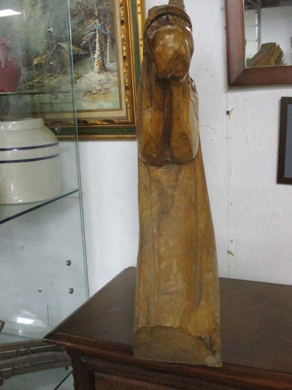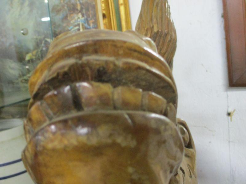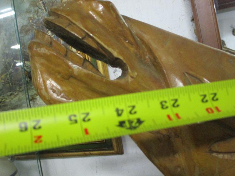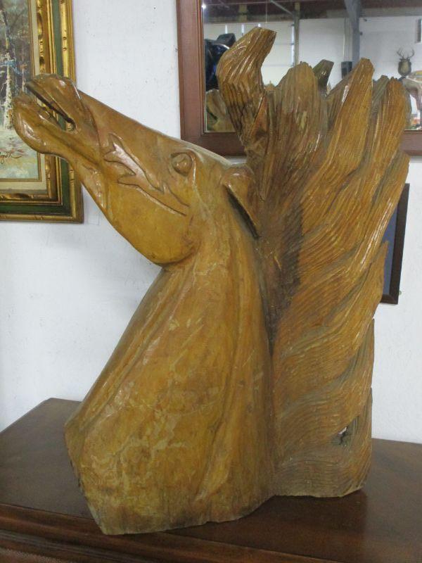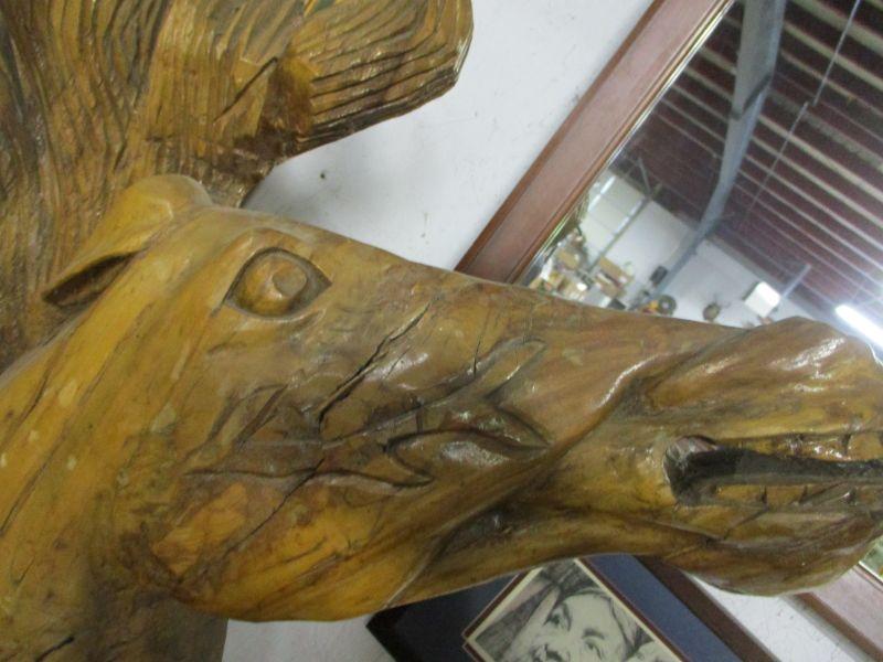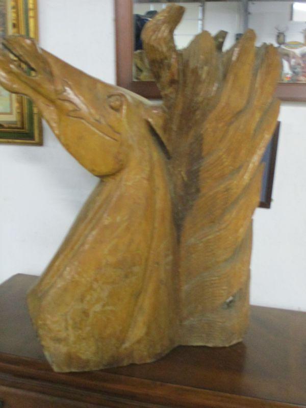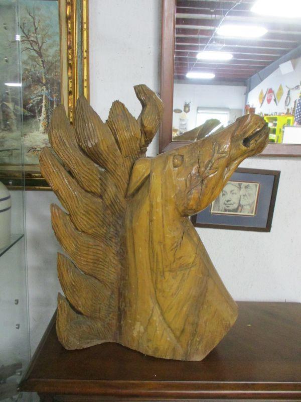 Lot 14 -Vintage Solid Wood Hand Carved Wild Horse Bust:  One of Two Available 26"