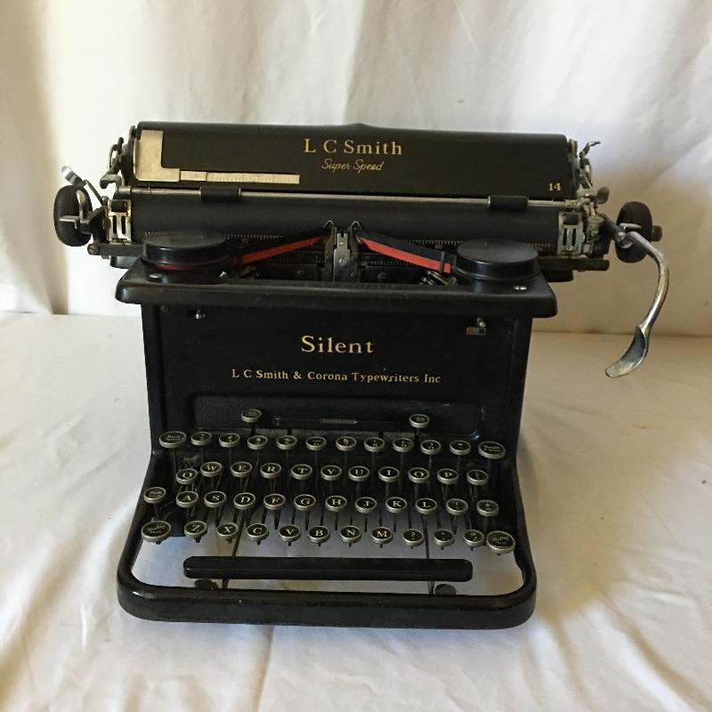 L.C. Smith and Corona Silent #14 typewriter. Typewriter appears to be in excellent condition and worked when tested, but the ribbon is dry. Wow this typewriter is heavy, you can get a workout just carrying it to a different room.