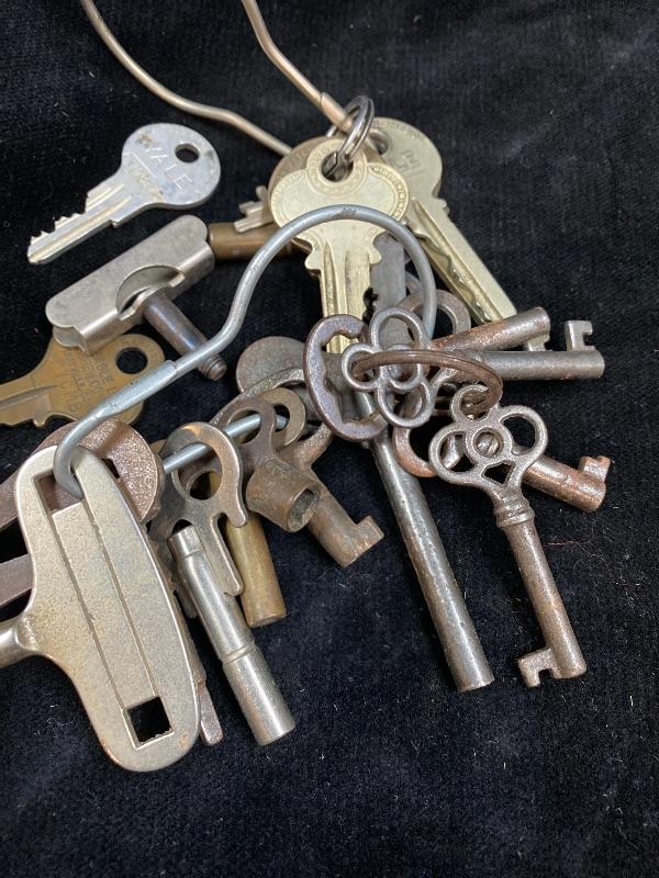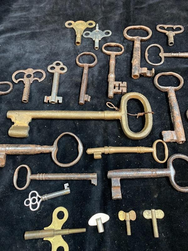 Lot of antique and vintage keys. Please see all pictures for condition of the items listed and what is included in the lot. Pictures will also show any measurements if taken and is the best representation of the items. Thank you for looking and have fun bidding! We appreciate Treasure Hunters!