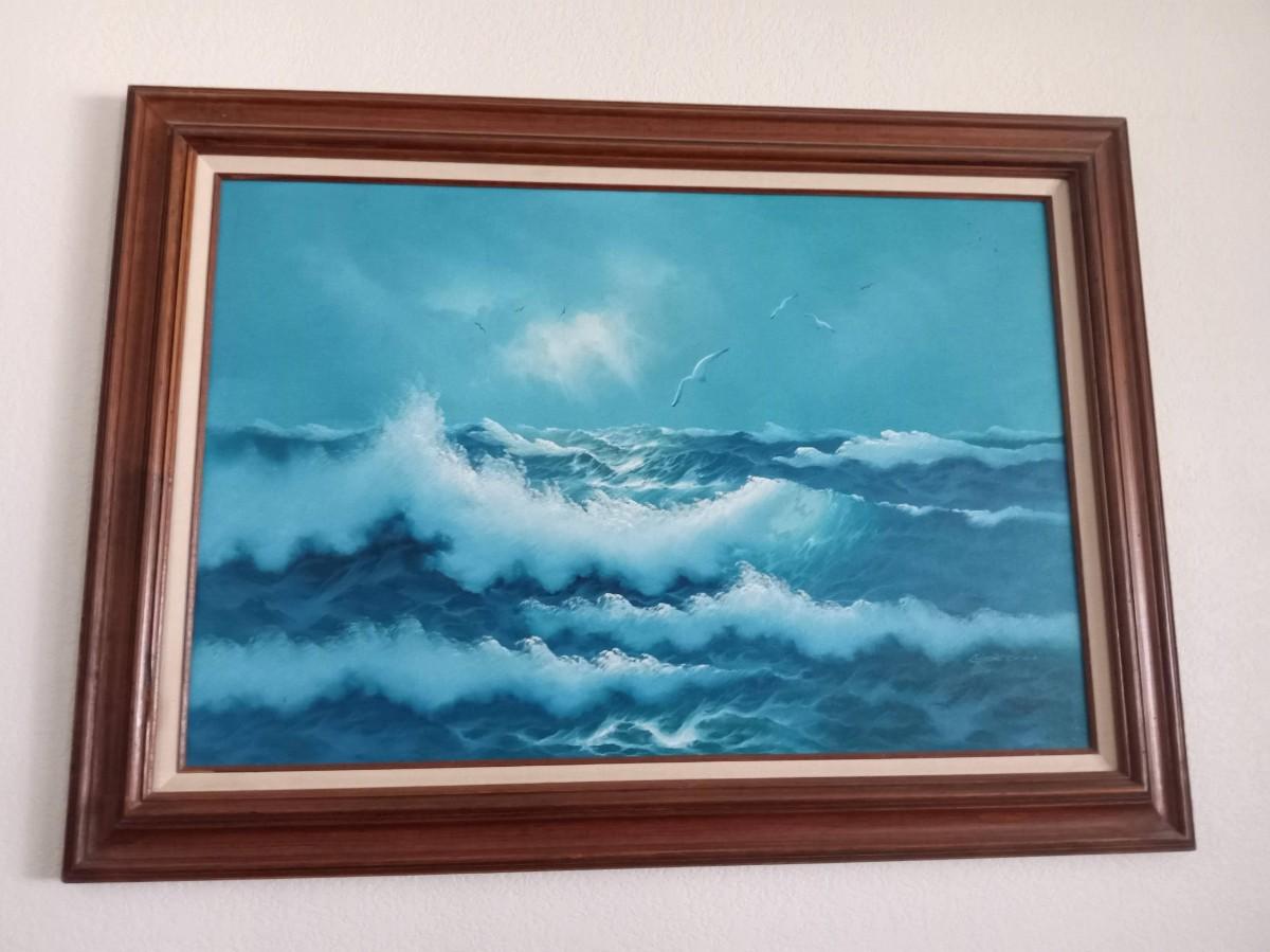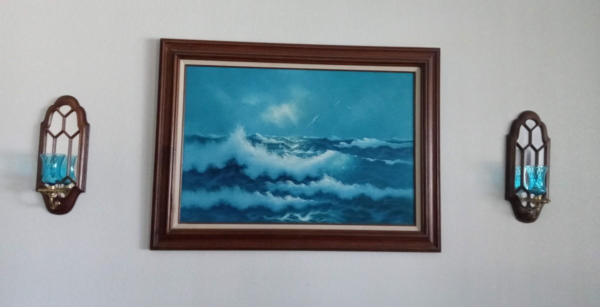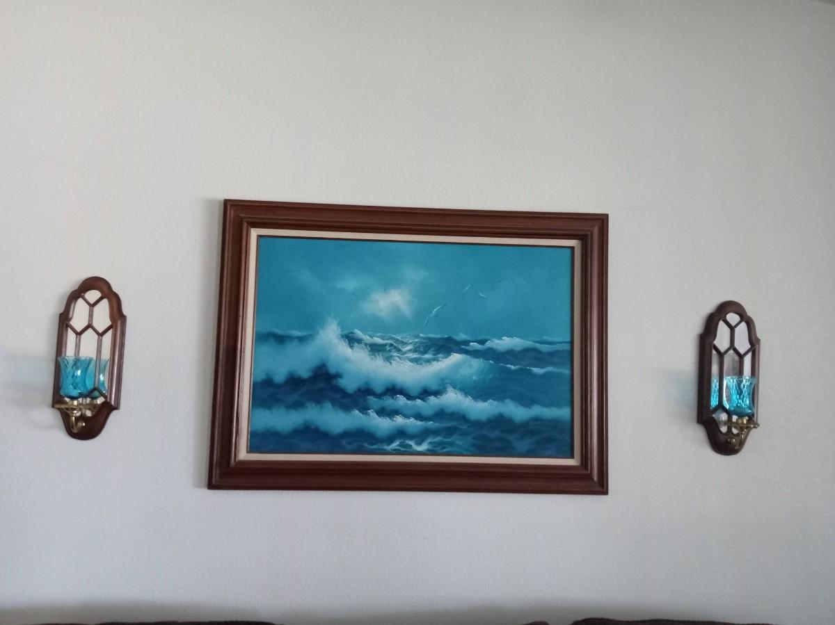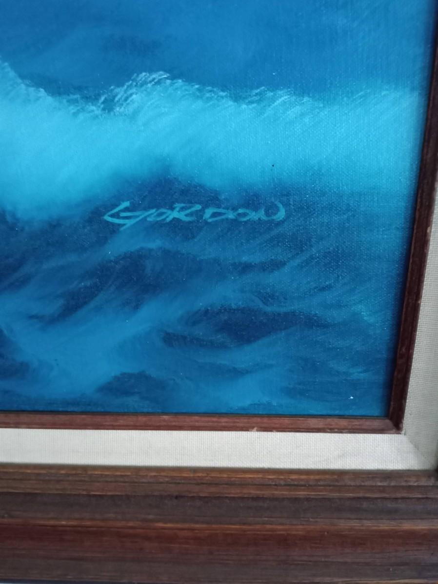 BEAUTIFUL OCEAN SCENE ART WORK SIGNED BY GORDON. TWO CANDLE