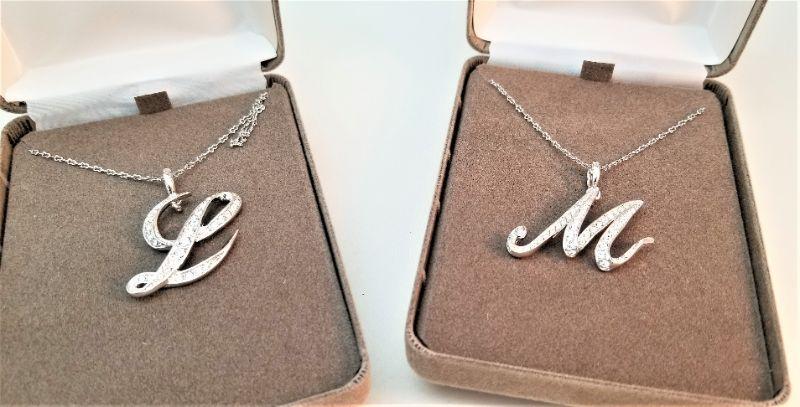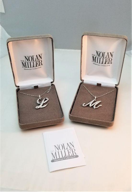 Lot #13  Pair of Nolan Miller initial necklaces in original boxes - "L" and "M"