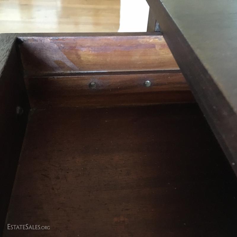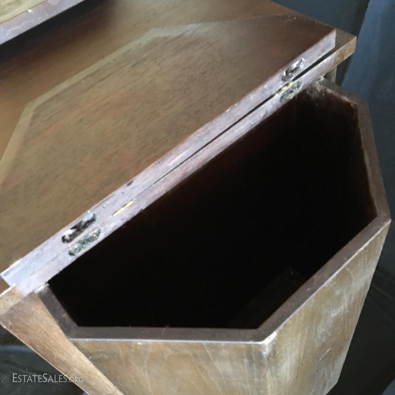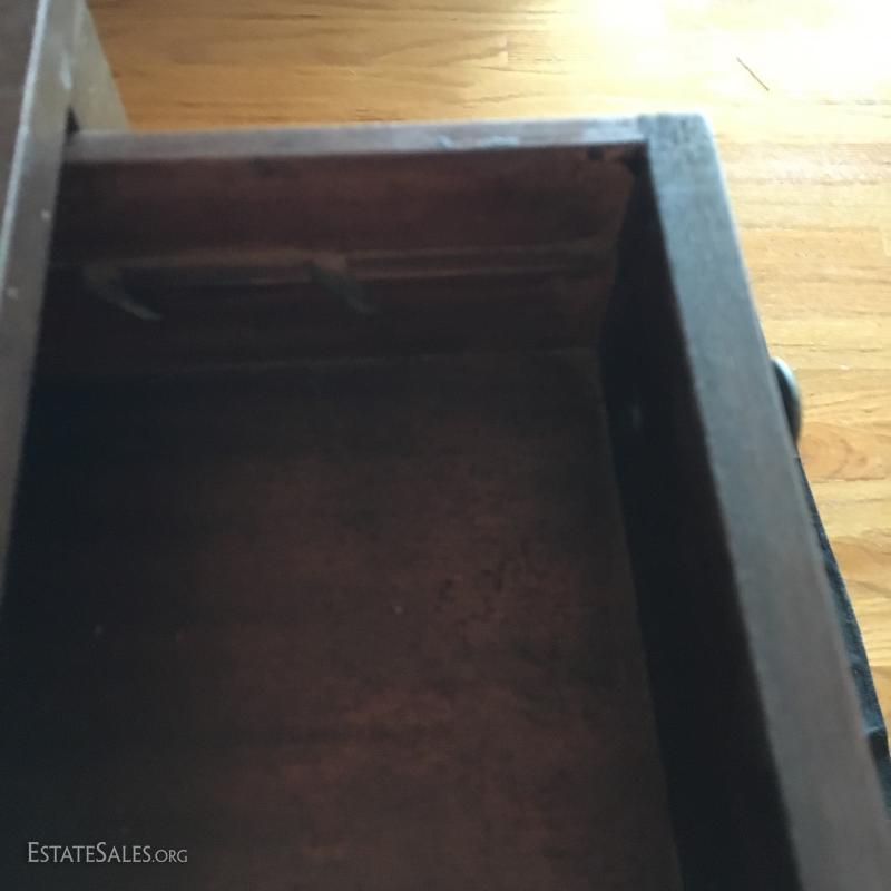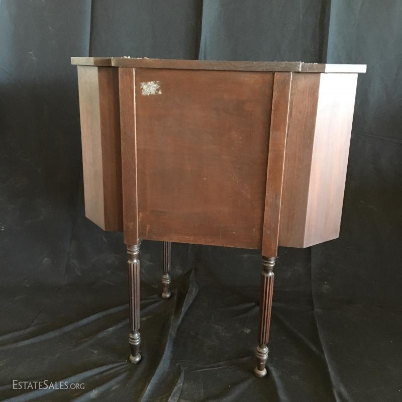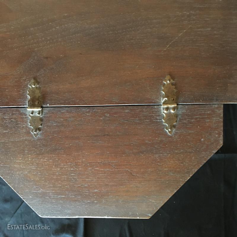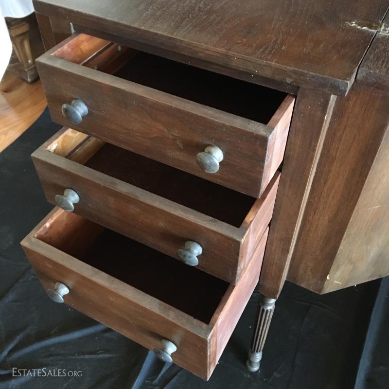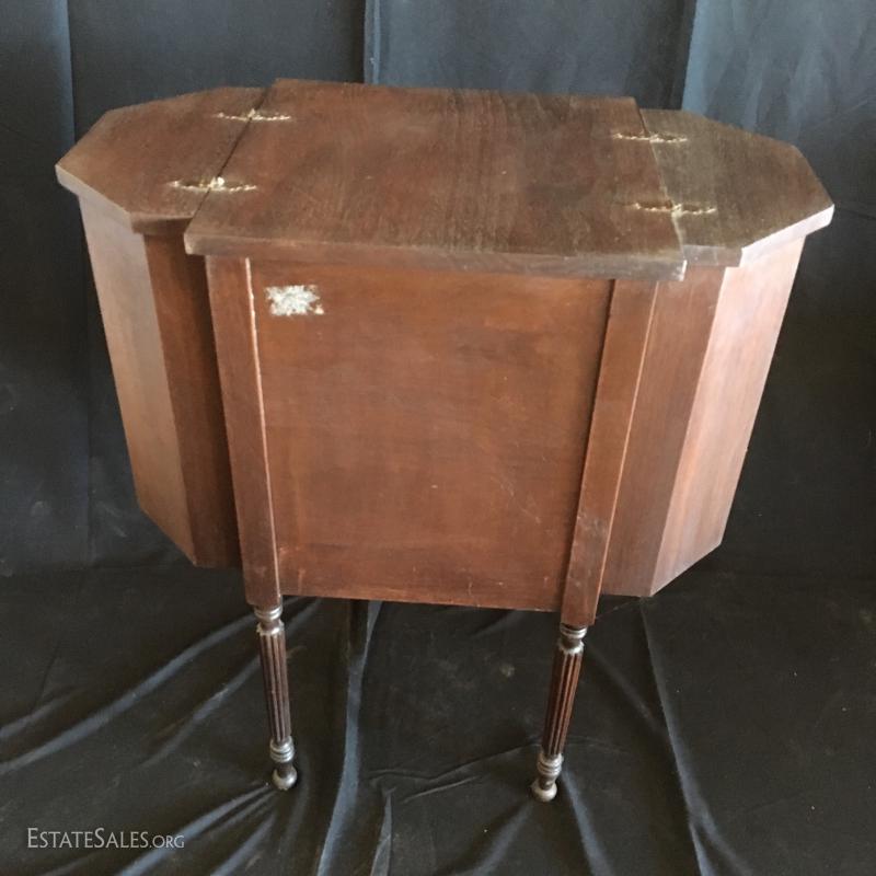 Small Wooden Table with three drawers and two side bins. Side top doors open to deep pocket. See photos. No manufacture marks. No Shipping - Local Pick up in Columbus, North Carolina 24.5"Lx14.5"wx27.5"H