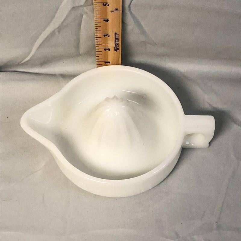 This reamer is in excellent condition with no chips or cracks found. It has Sunkist embossed on both sides. The bottom of the reamer says "Made in USA Pat No 68764"
