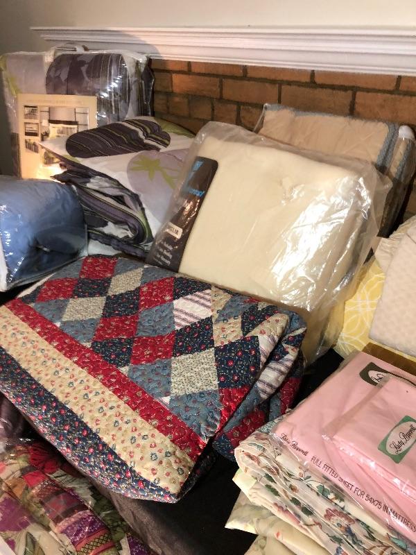 Lot 13 - Various Bedding - Twin & Full Comforters, Warming Blanket, Wool Blanket, Quilts, Sheets