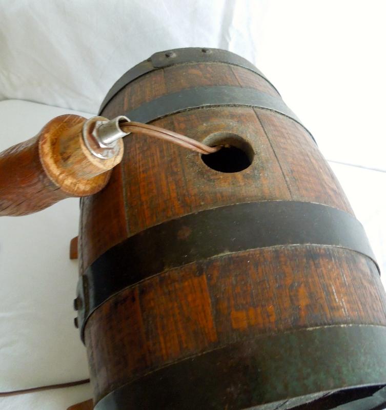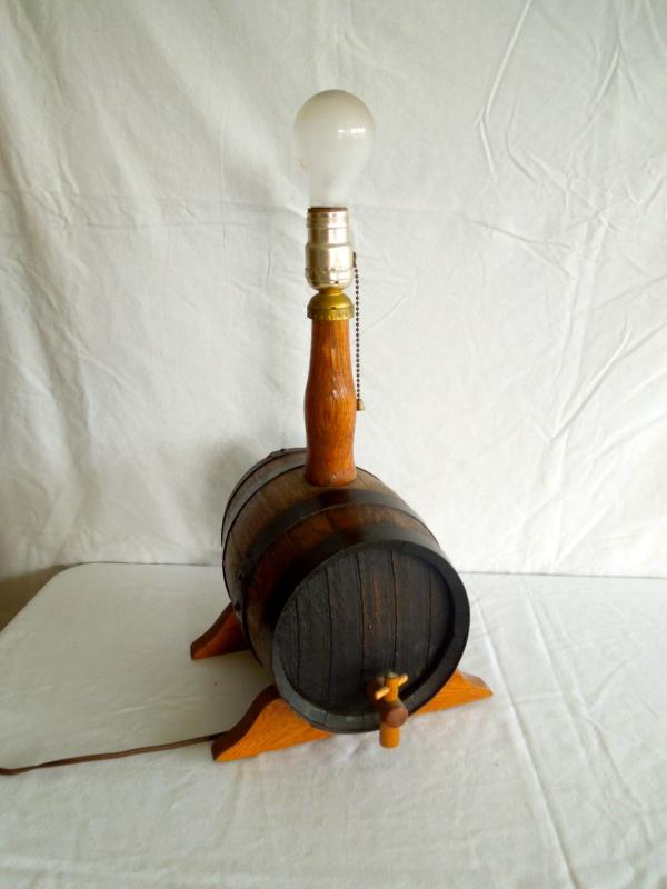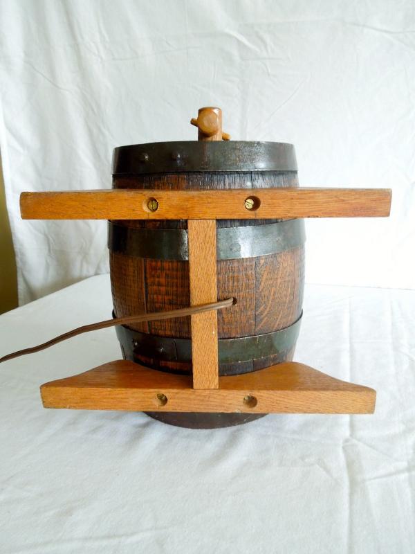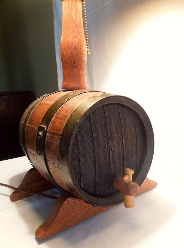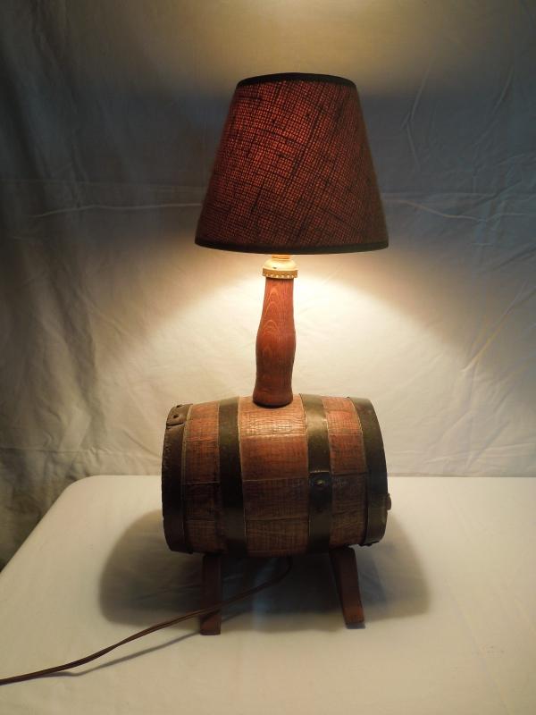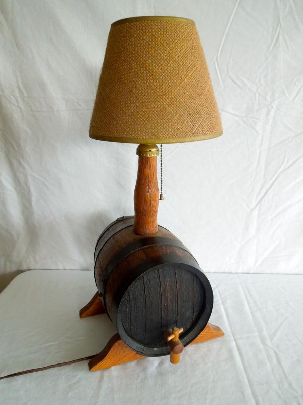 Lot 13 Vintage Whiskey Barrel Lamp Burlap Shade