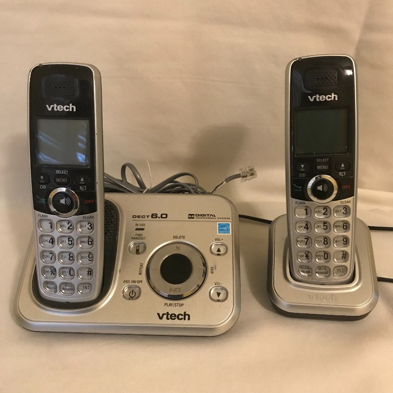 Vizio Razor LED 19” boasts SRS, Dolby Digital, HDMI, HDTV and EnergyStar! Device appears in great condition and remote turns on TV when plugged in. Television is accompanied by VTech Dect 6.0 Digital Answering System with two receivers and second docking station. Light turns on main base when plugged in. Local pick up only.