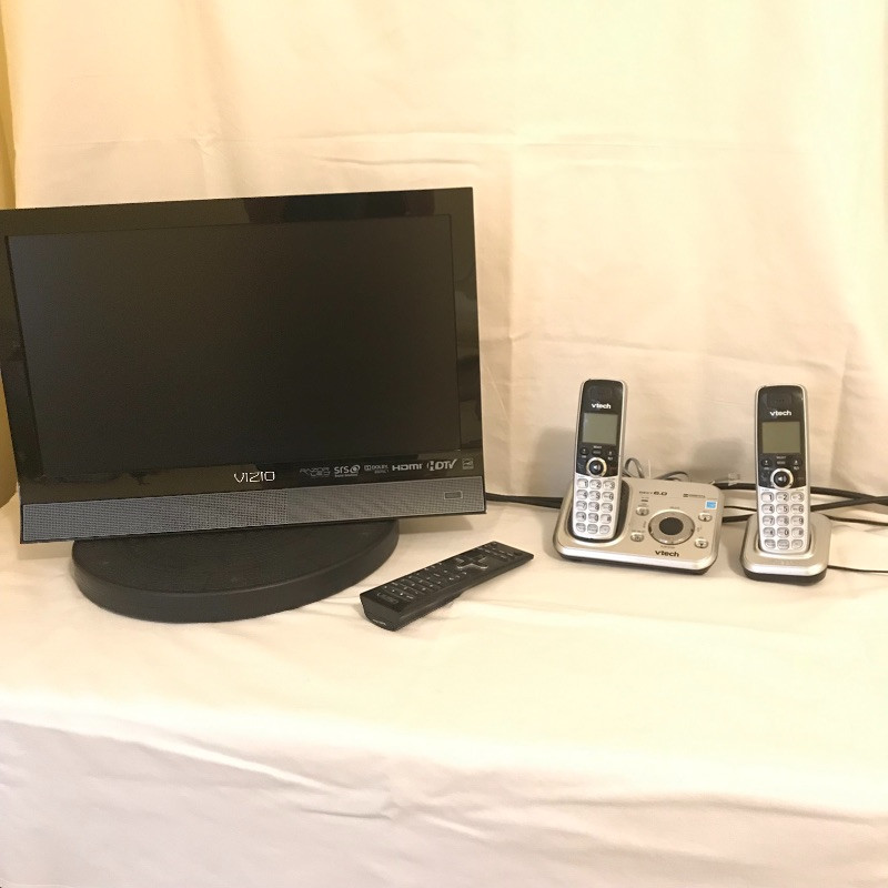 Lot 13 - 19" Vizio LED TV and Cordless Phones