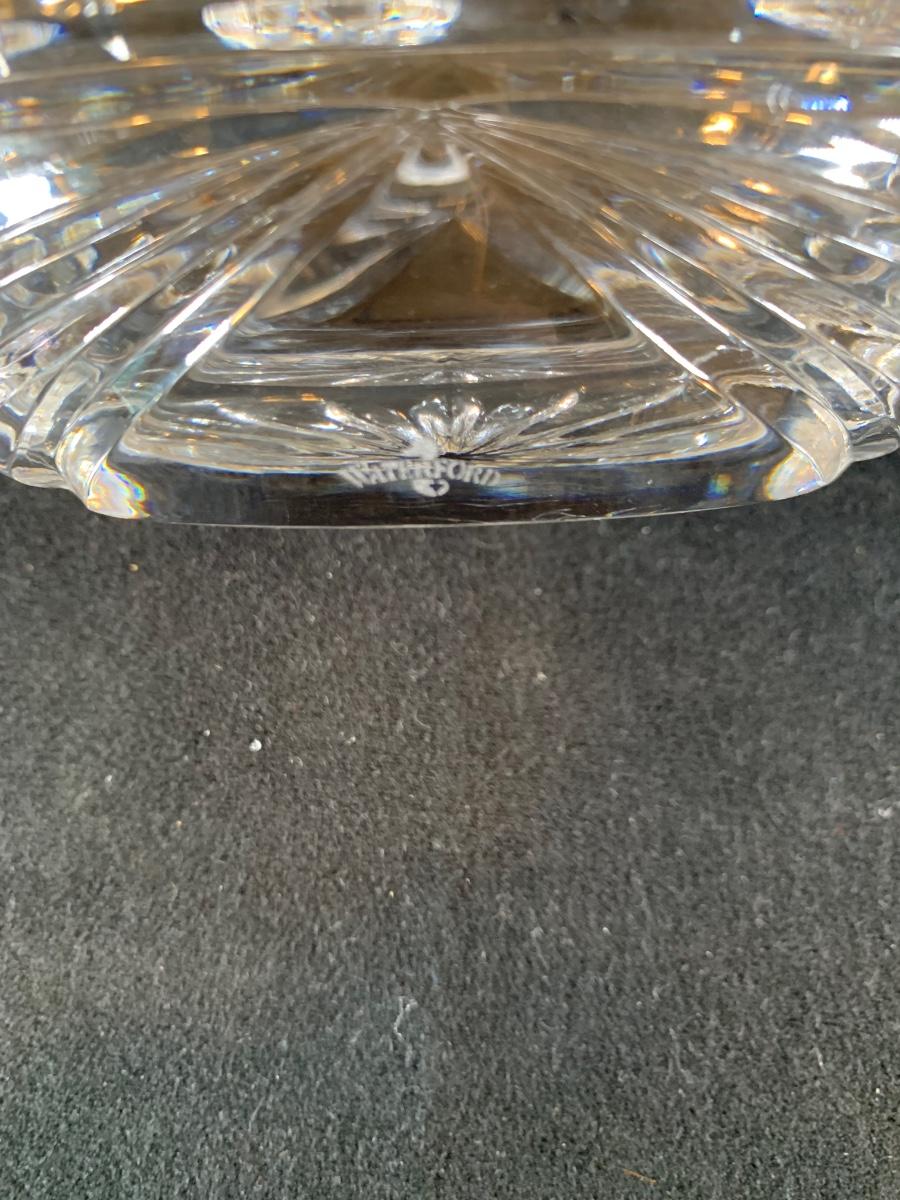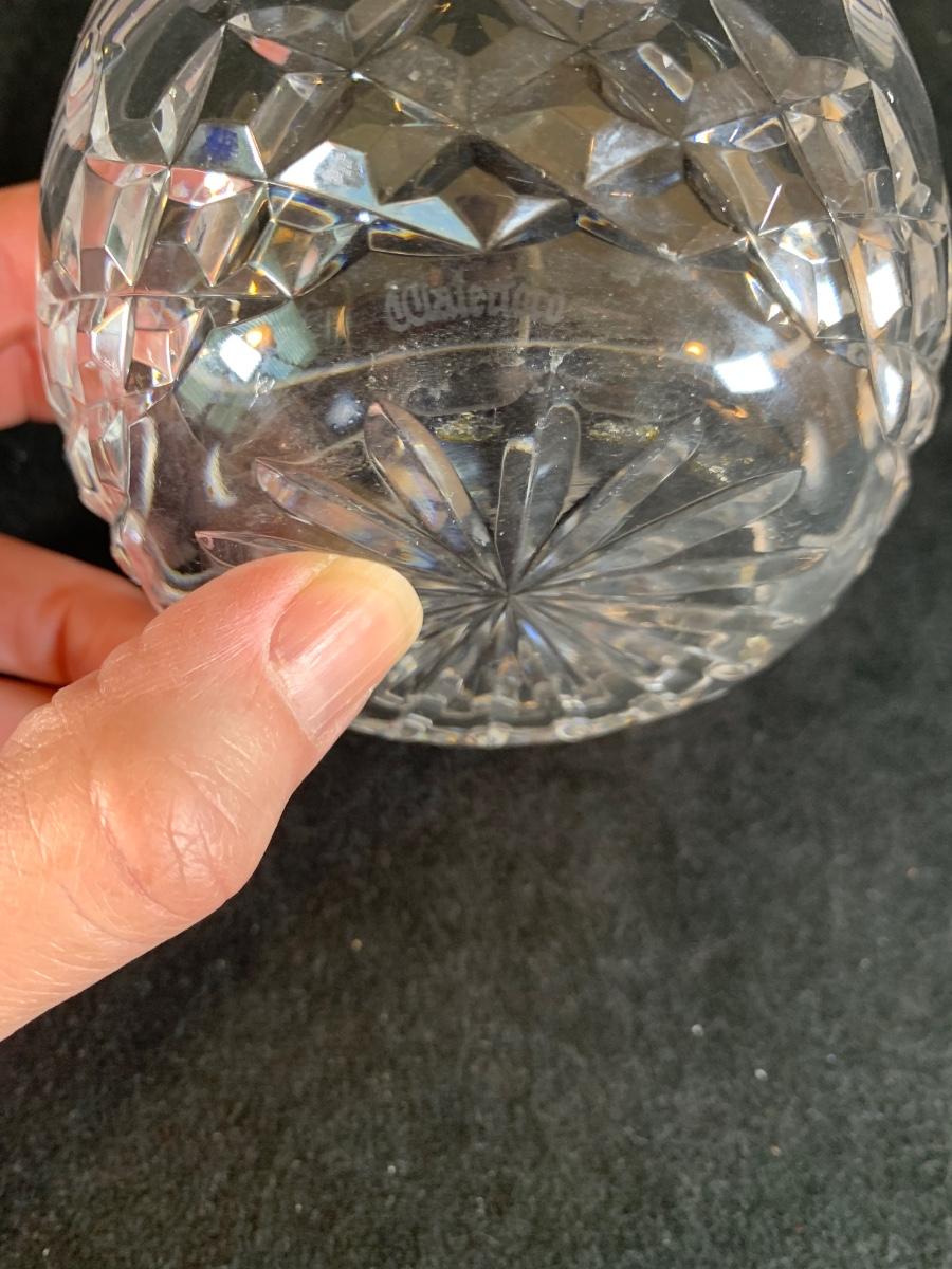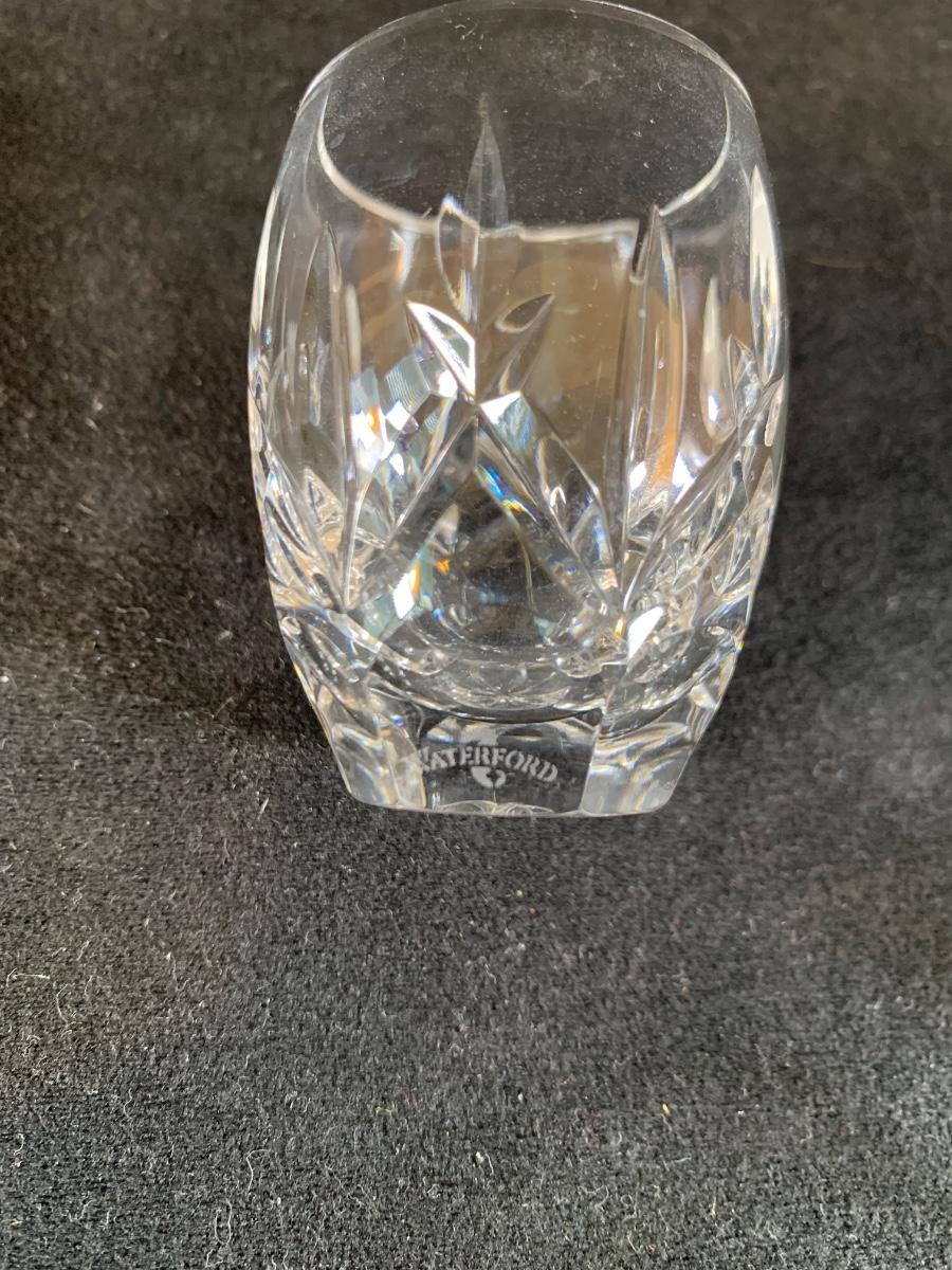 Lot includes Waterford Crystal small oval dish, small round dish, shot glass and Marquis by Waterford Crystal Perfume Bottle. Perfume bottle is missing the stopper.