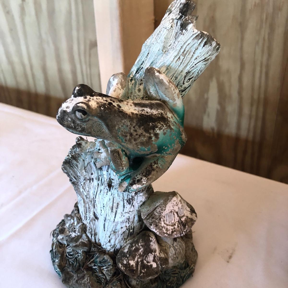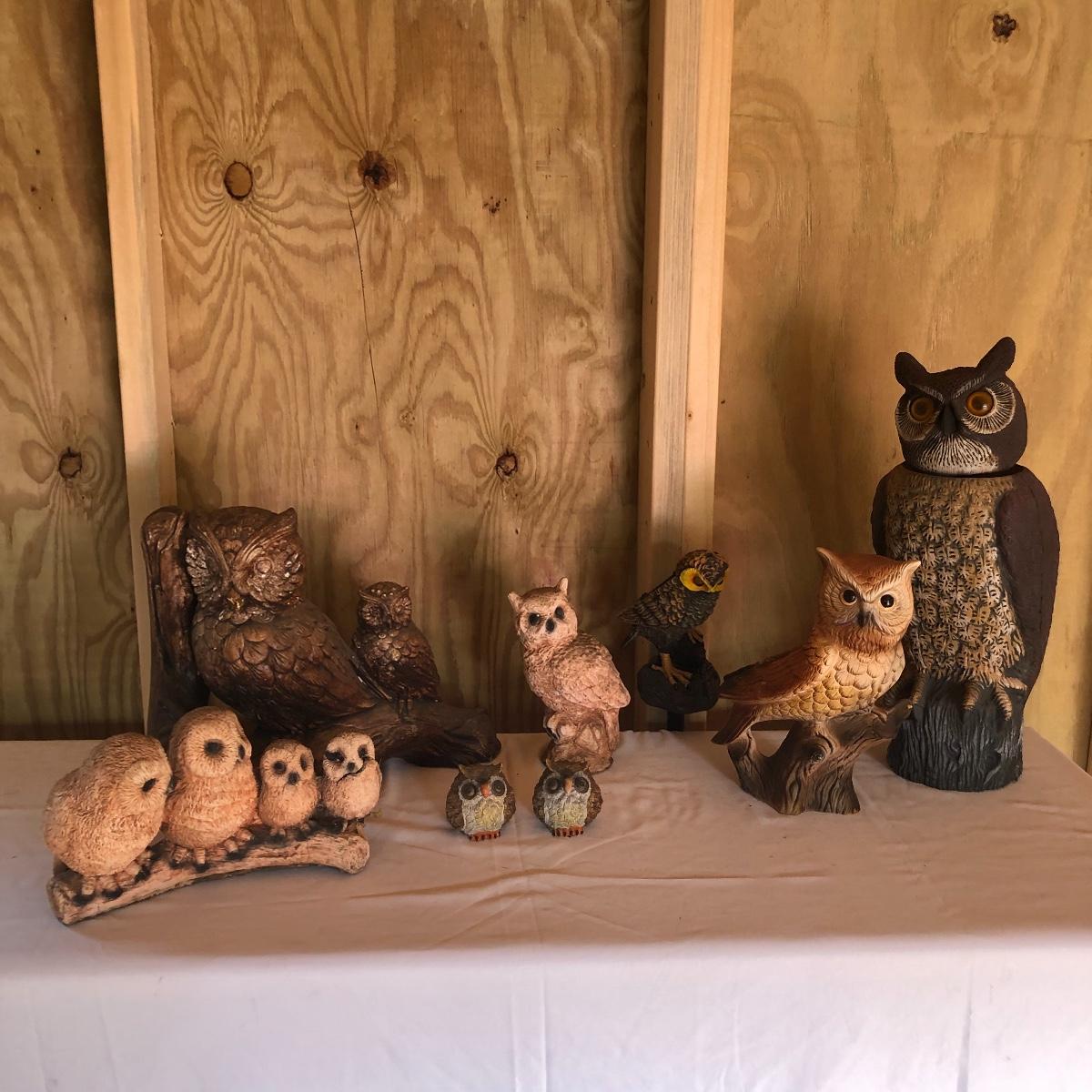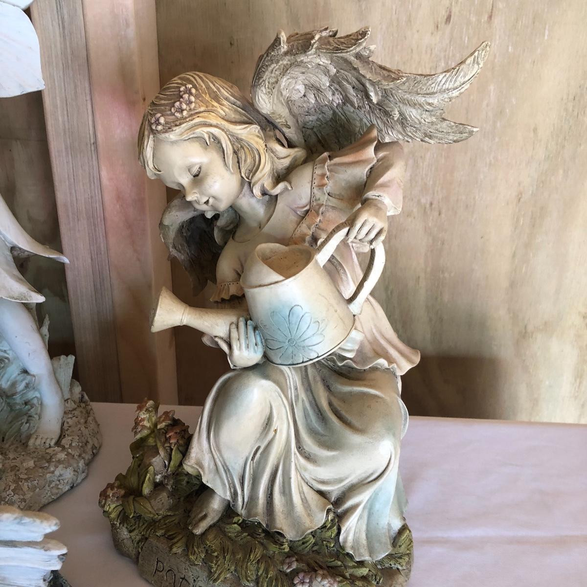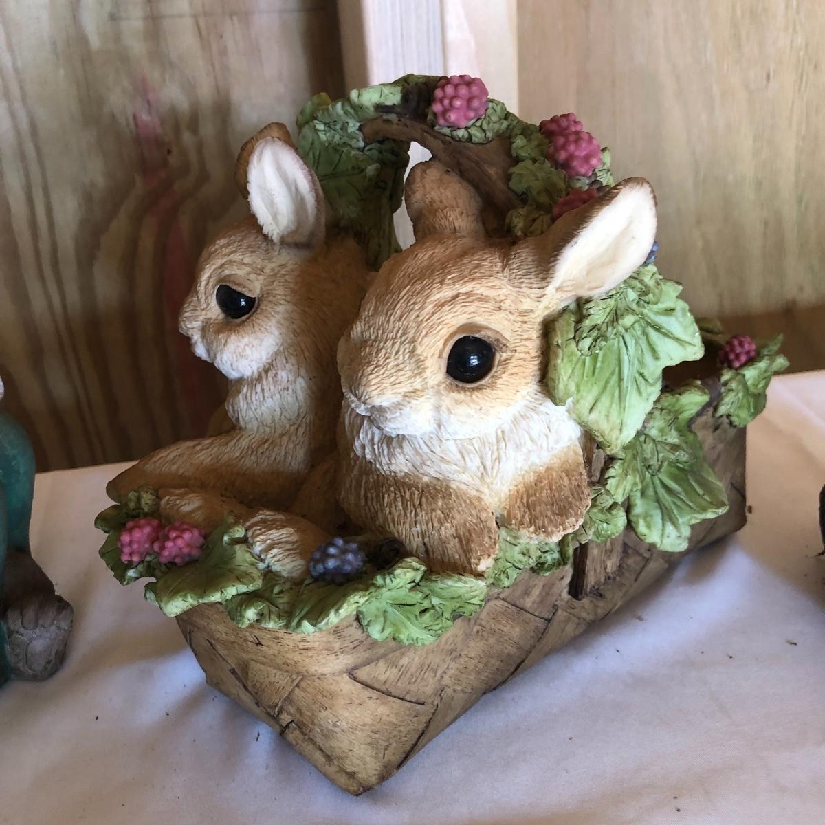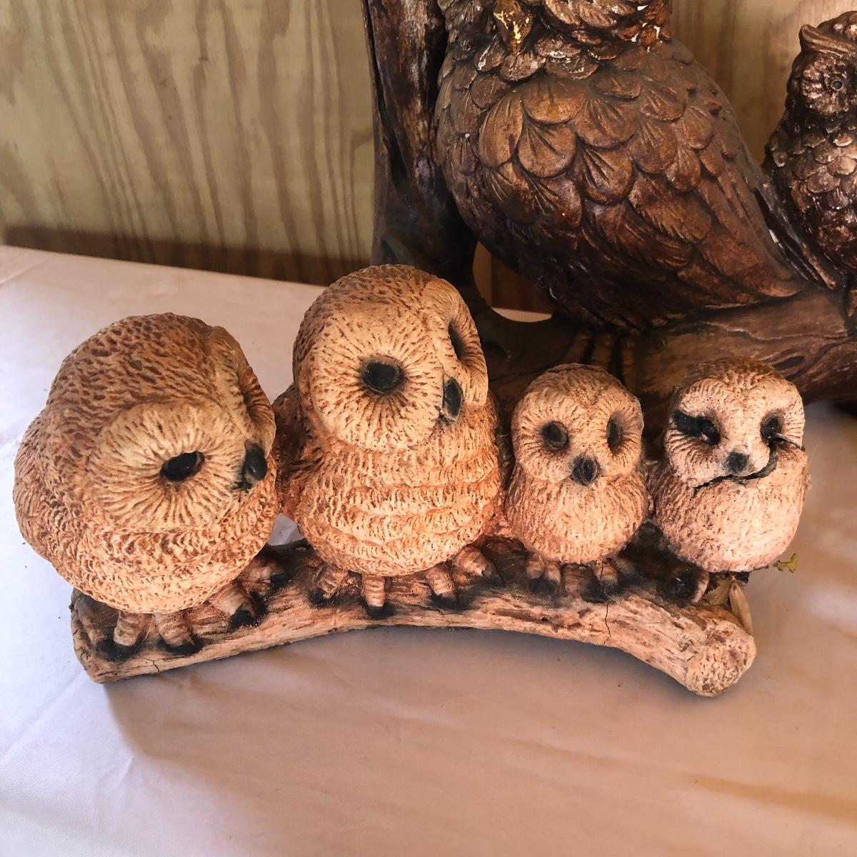 This lot will transform your flower beds and yard into a magical place! There are approximately twenty seven items in this unique lot! Most of the statues are made of a resin. There are three angel statues with the tallest being approximately 17” tall. There are two children playing that are about 18” tall (not including the jump rope). There are eight owl statues with the tallest owl being 19” tall. Note his head swivels. Also, note the piece that has four owls on a limb has a broken owl which could easily be glued. There are four bunny statues, three baskets and nine other statues comprising of frogs, turtles, bears and squirrels. The lot is completed with three terra cotta plaques, two of which are in boxes. Local pick up only.