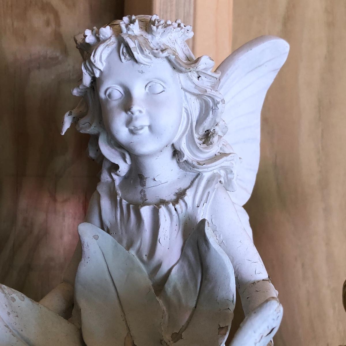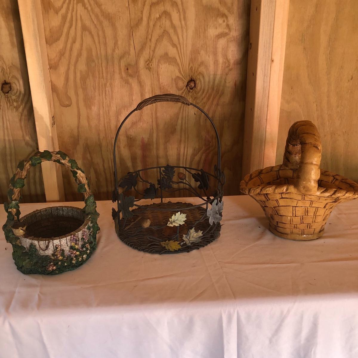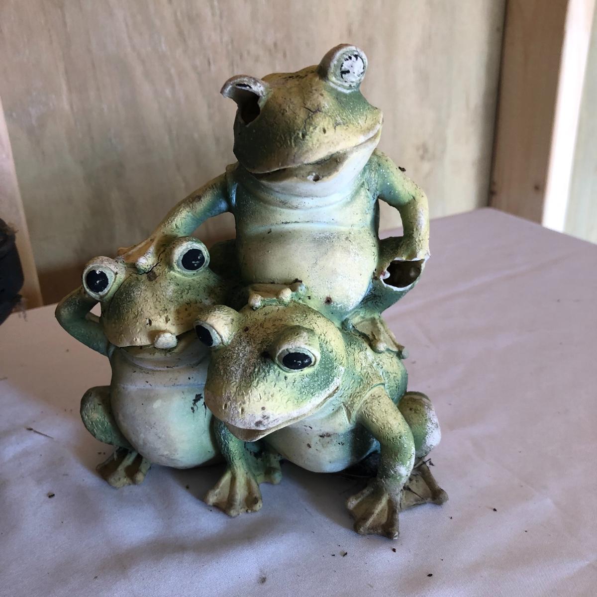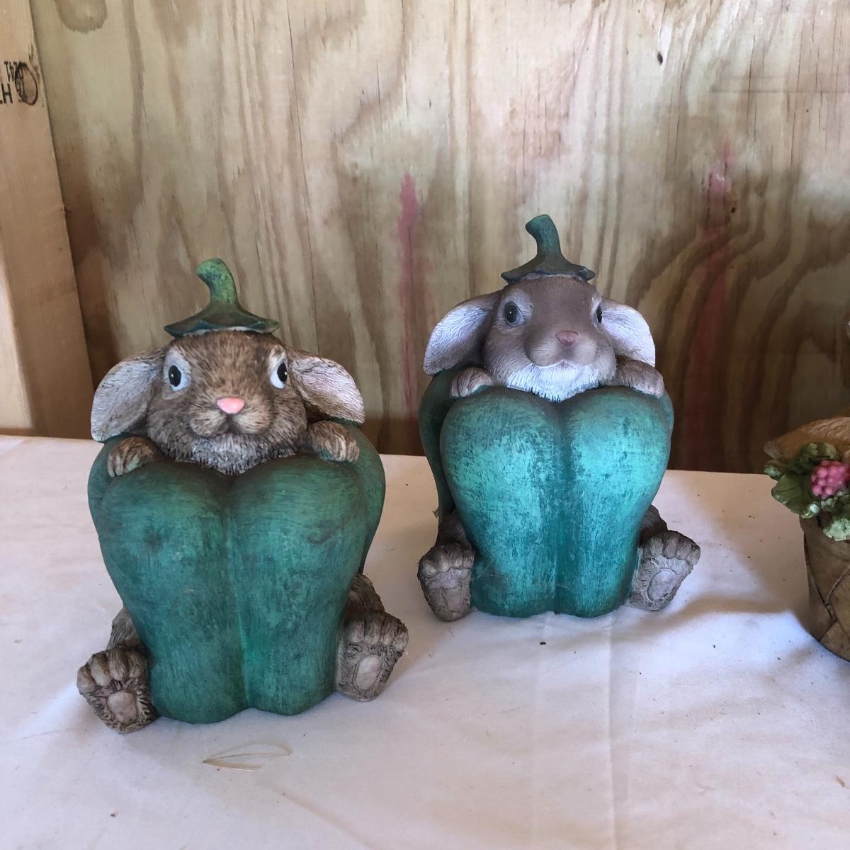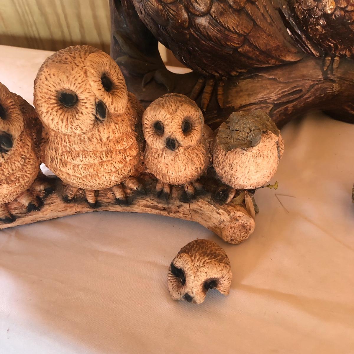 This lot will transform your flower beds and yard into a magical place! There are approximately twenty seven items in this unique lot! Most of the statues are made of a resin. There are three angel statues with the tallest being approximately 17” tall. There are two children playing that are about 18” tall (not including the jump rope). There are eight owl statues with the tallest owl being 19” tall. Note his head swivels. Also, note the piece that has four owls on a limb has a broken owl which could easily be glued. There are four bunny statues, three baskets and nine other statues comprising of frogs, turtles, bears and squirrels. The lot is completed with three terra cotta plaques, two of which are in boxes. Local pick up only.