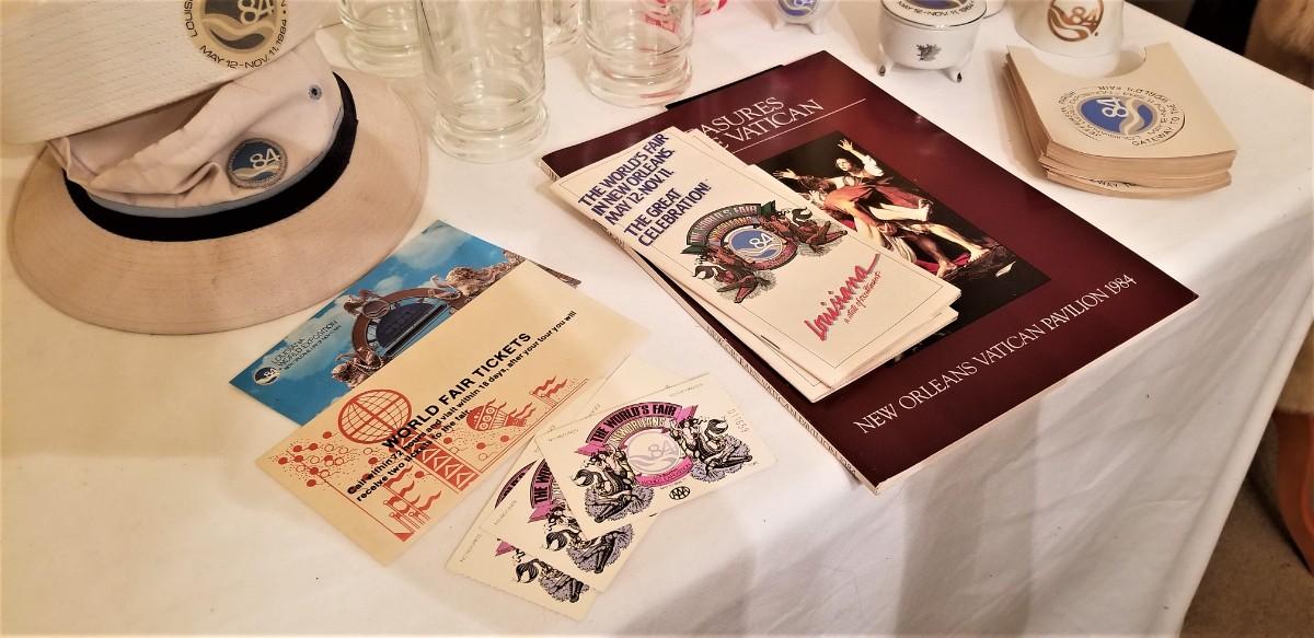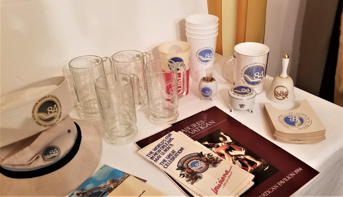 You get all you see here - souvenirs from the 1984 World's Fair - cups, glasses, Vatican Pavilion, tickets, stickers, hats, trinket box, toothpick holder, etc. Good dealer lot.