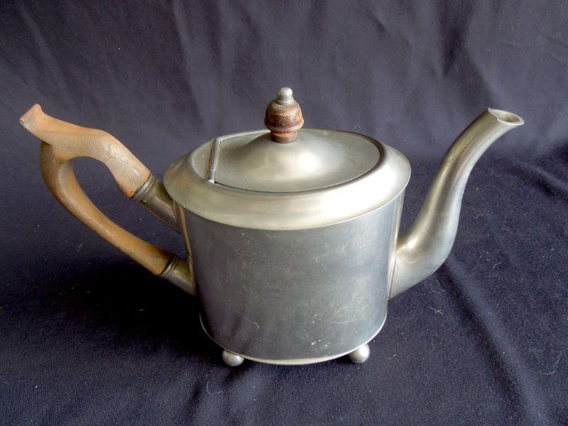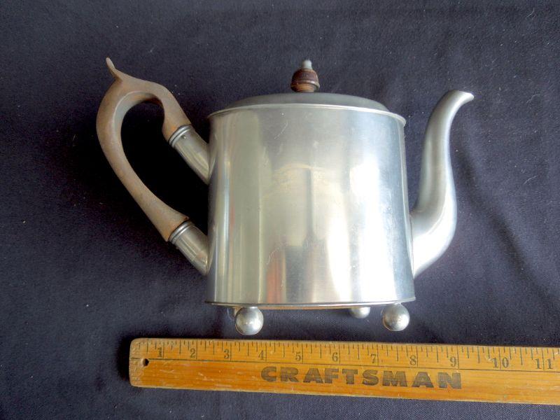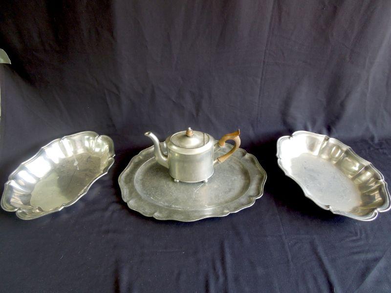 Lot 130: 4 Pieces of Vintage Pewter Serving Pieces Teapot