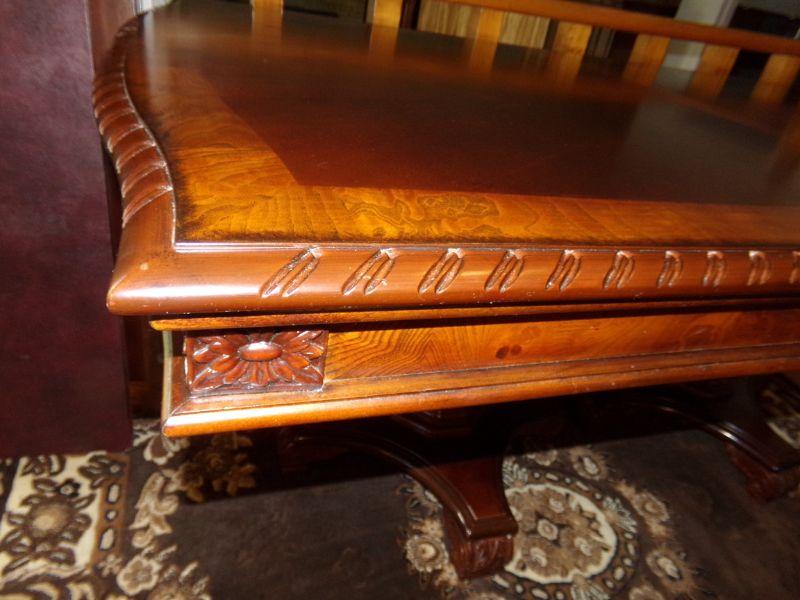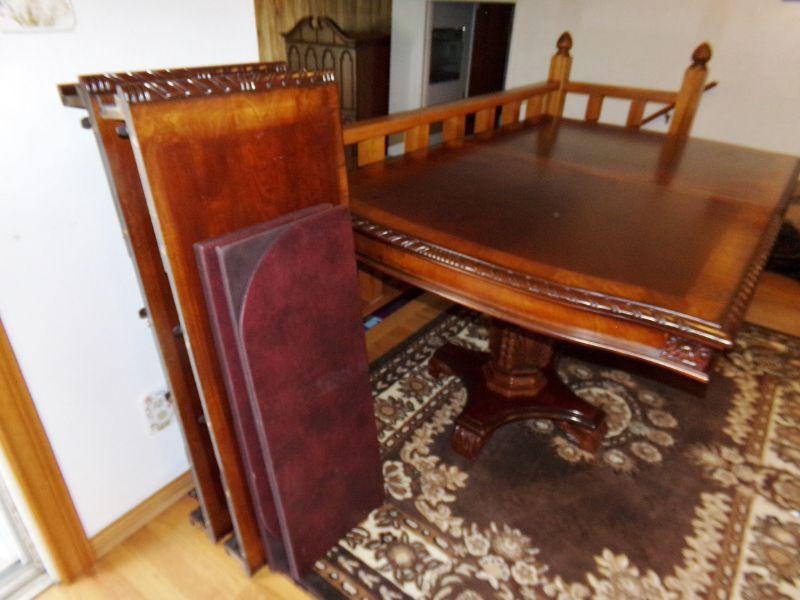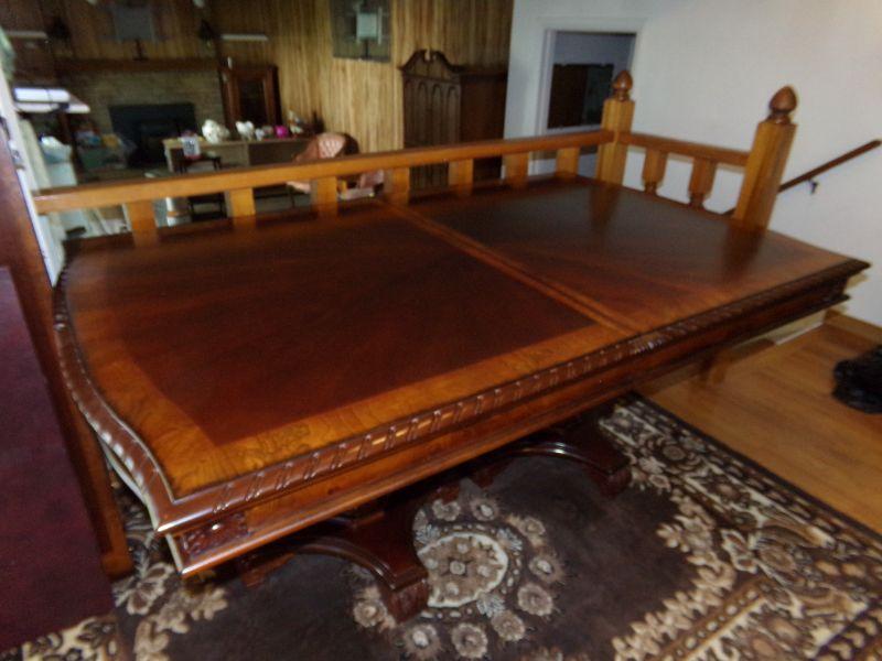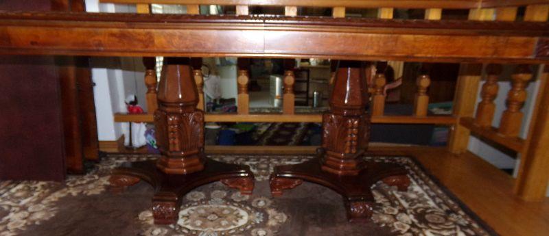 DOUBLE PEDESTAL DINING ROOM TABLE WITH 2 LEAVES AND PADS