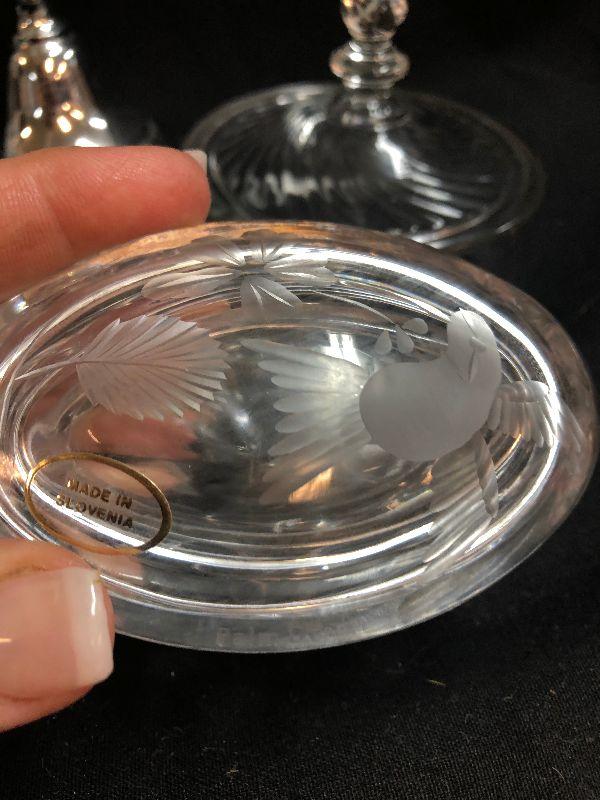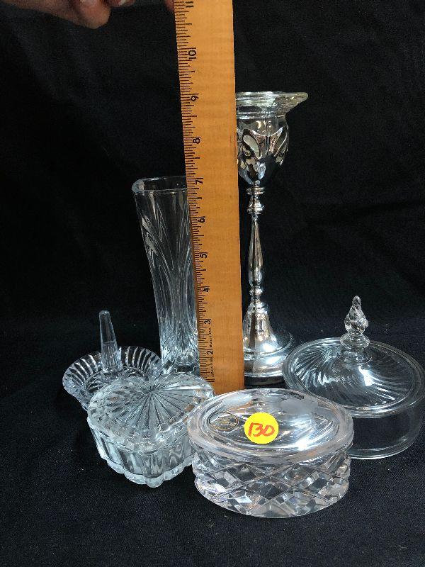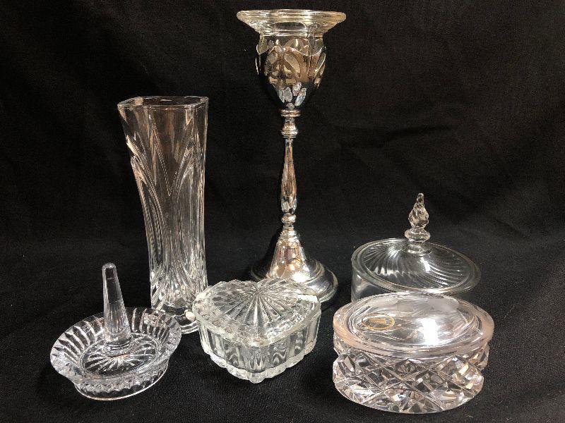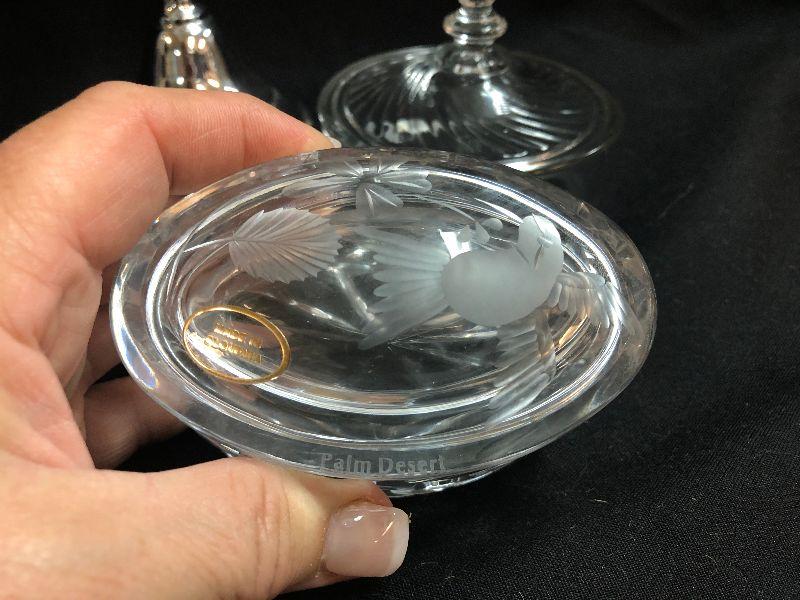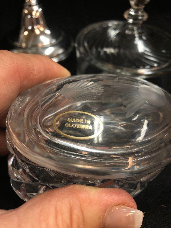 Lot 130: Vintage Signed and unsigned crystal and glass Trinket Boxes and More