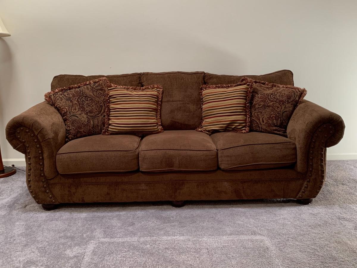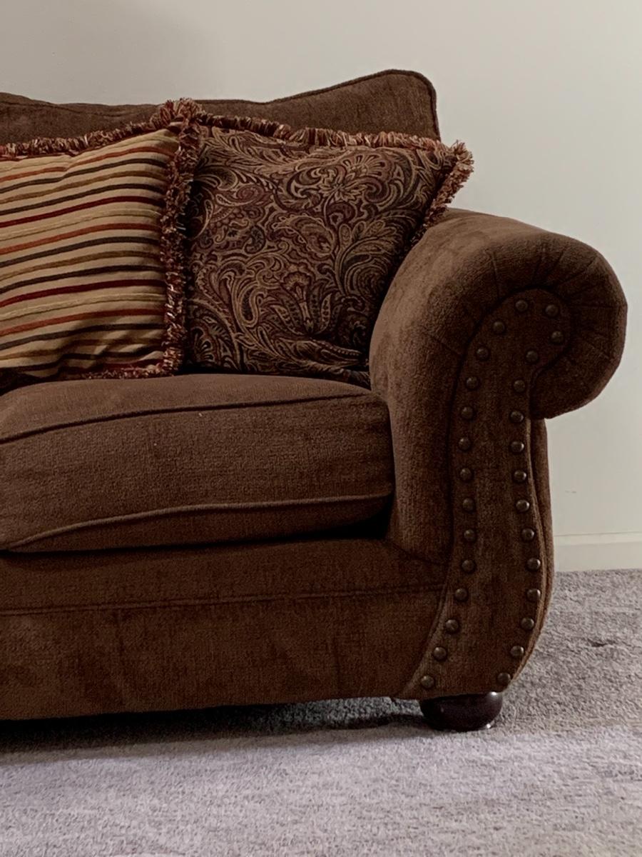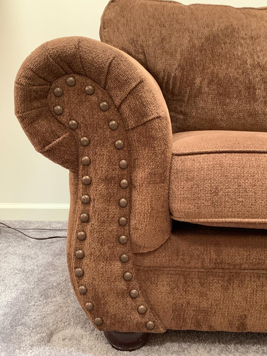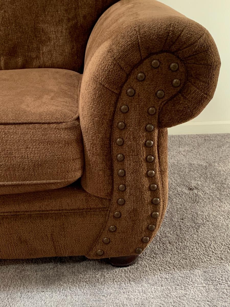Lot 130: Nail Trim Accented Cocoa Colored Sofa