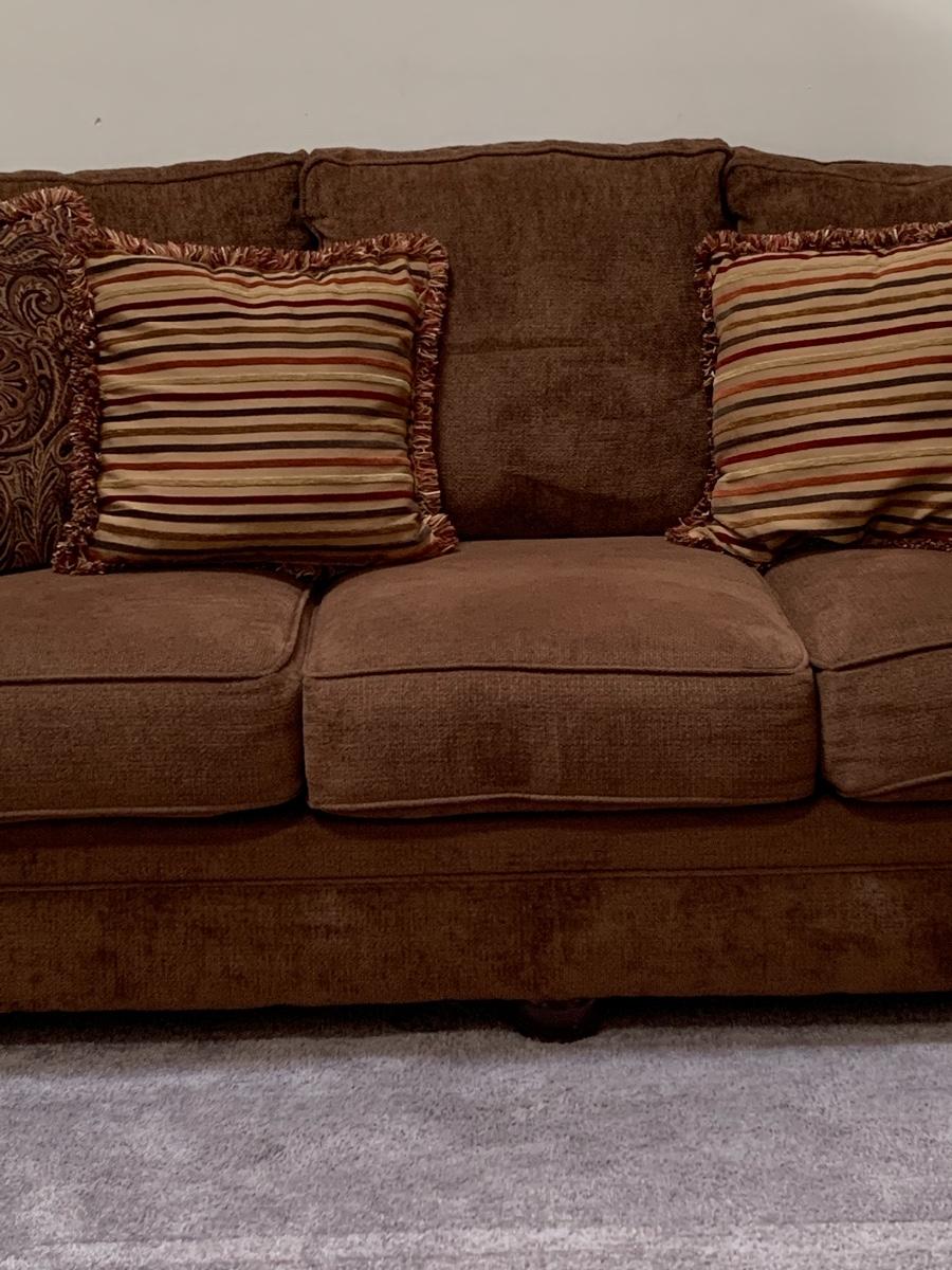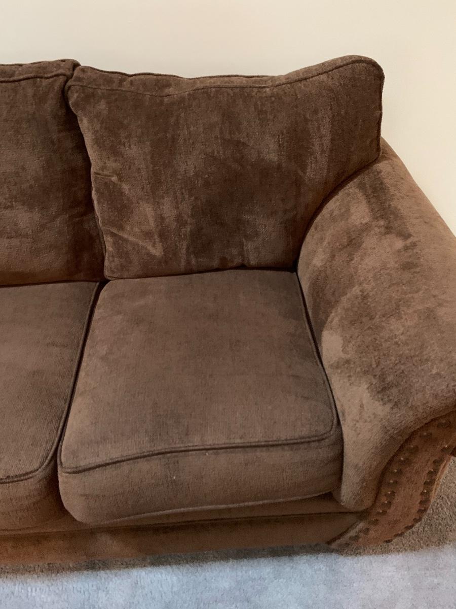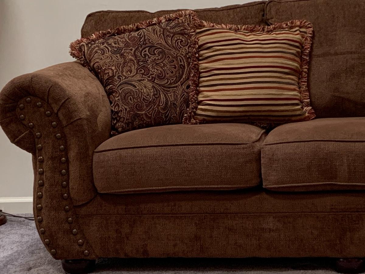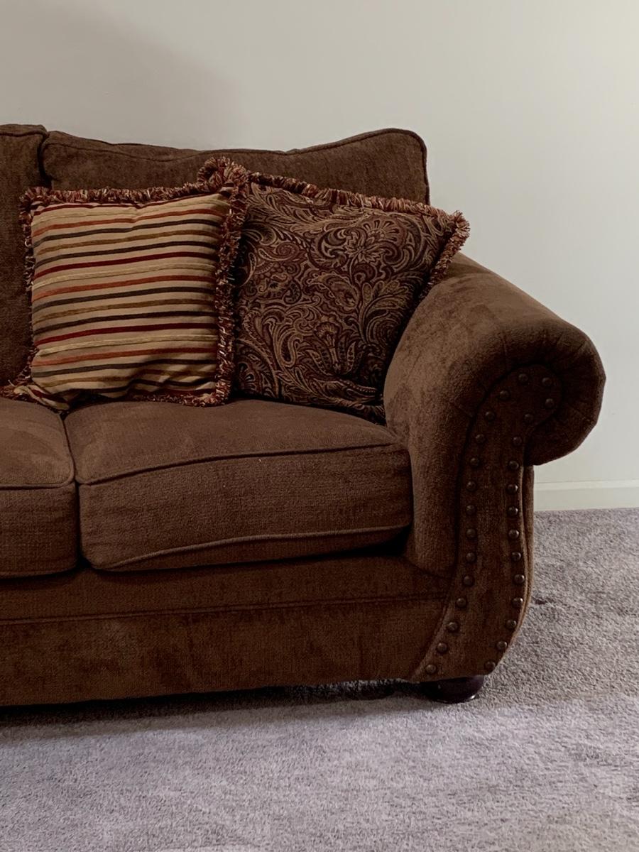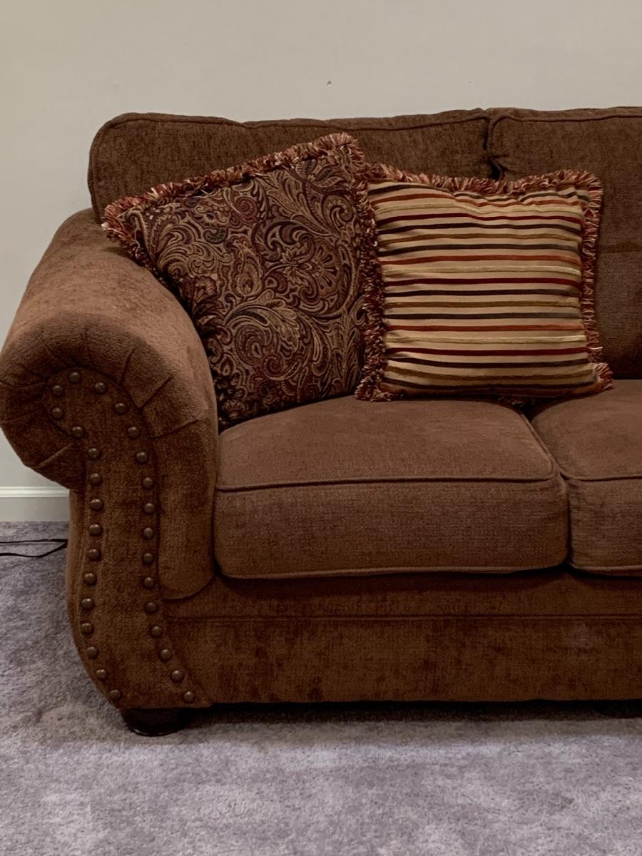 Lot 130: Nail Trim Accented Cocoa Colored Sofa