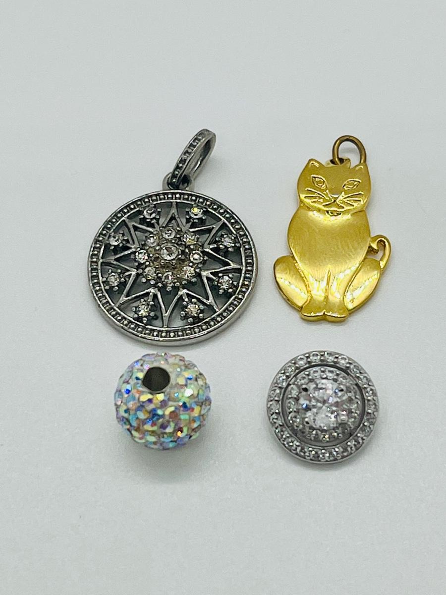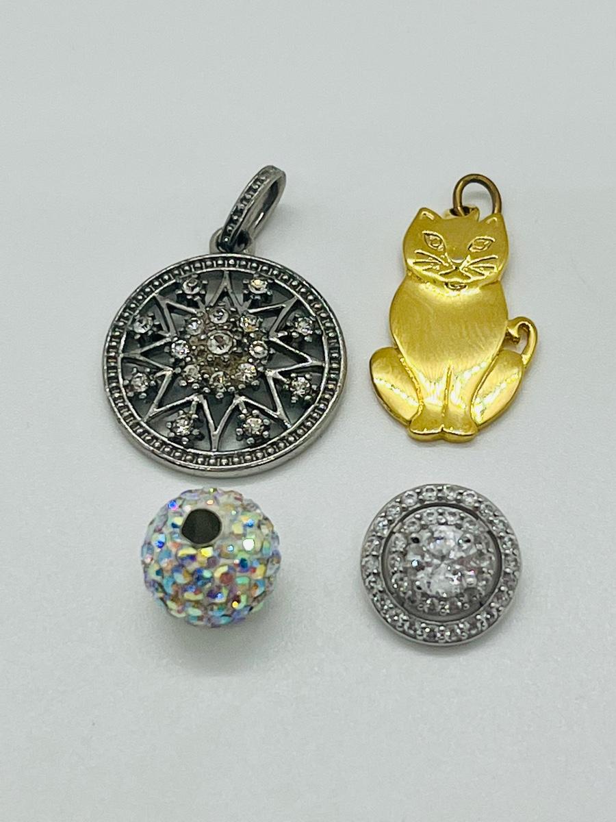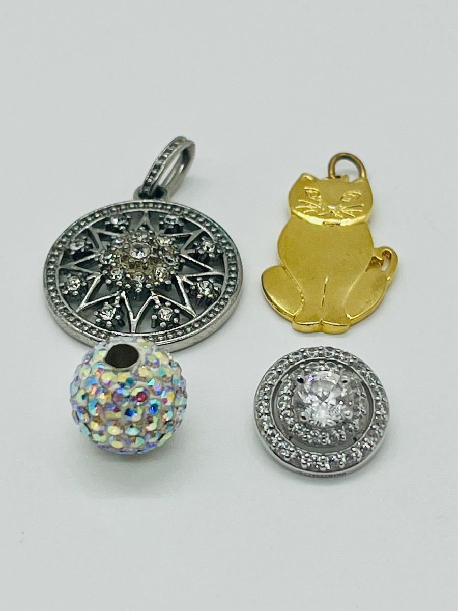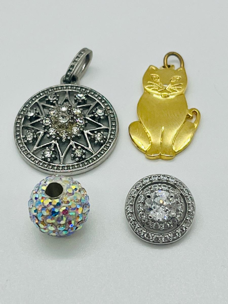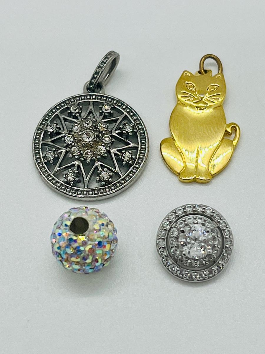 Lot 130: 3 crystal silvertone pendants and a goldtone Kitty