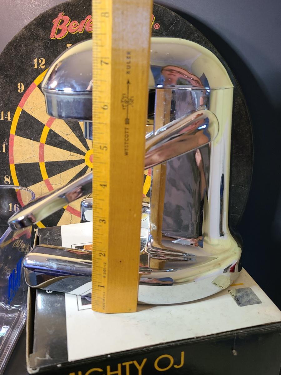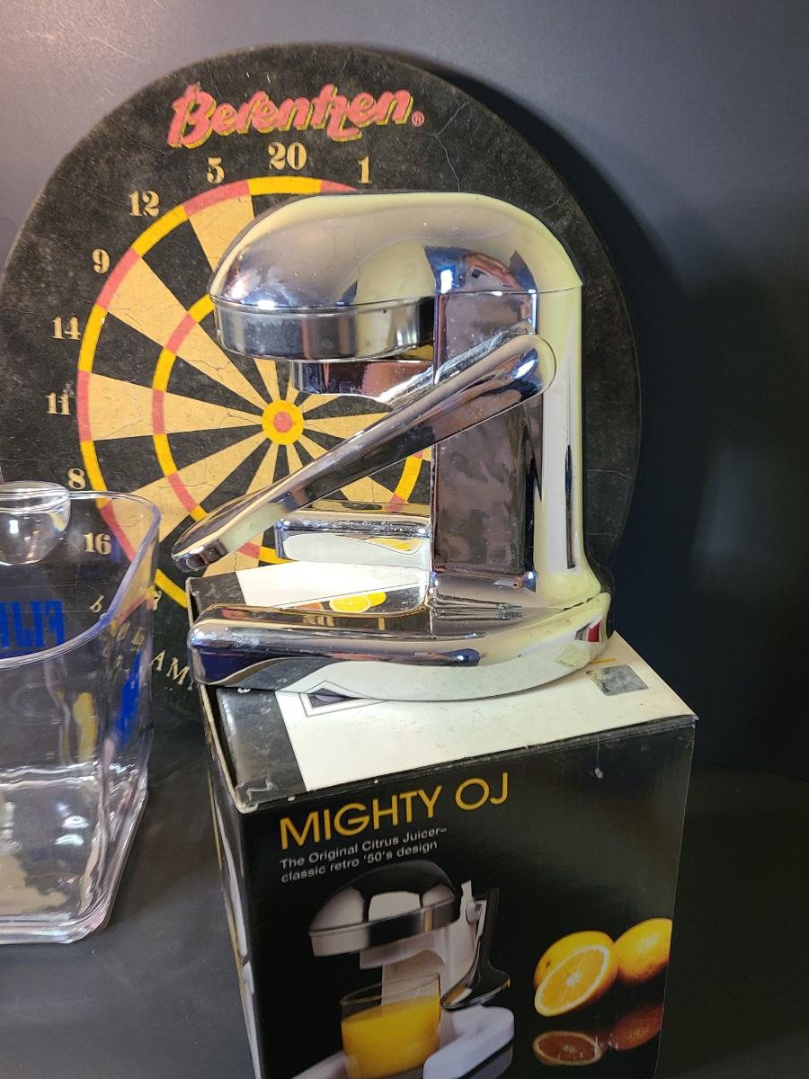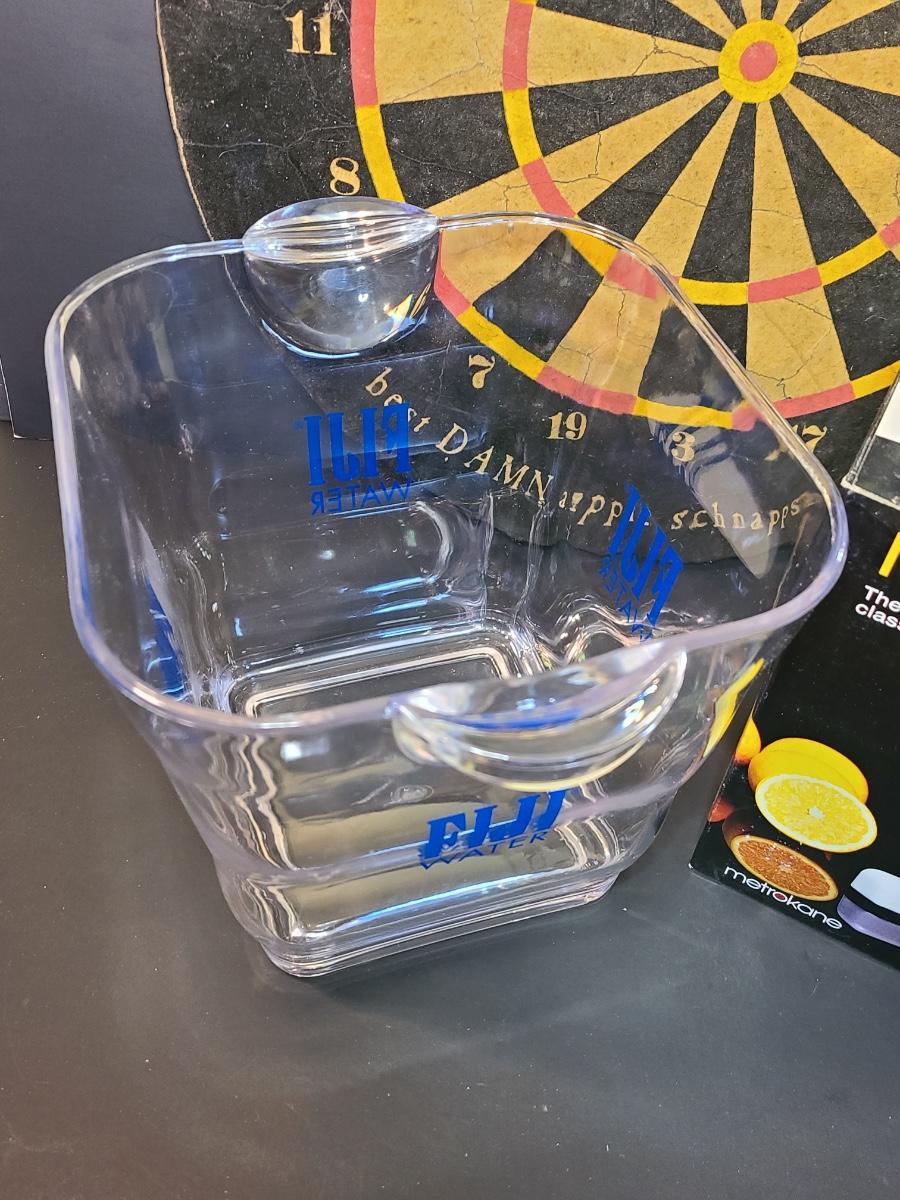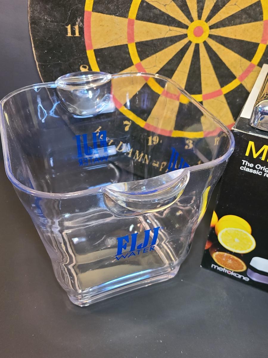 Lot 130: Might Joe Chrome Juicer, Dartboard, and Fiji Water Icebucket