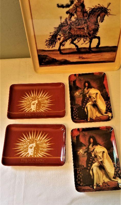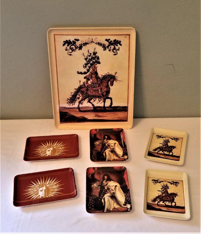 7 melamine trays from museum exhibit on the life of Louis XIV - large tray is 12" x 9.5" - others are 6" x 4.25.
