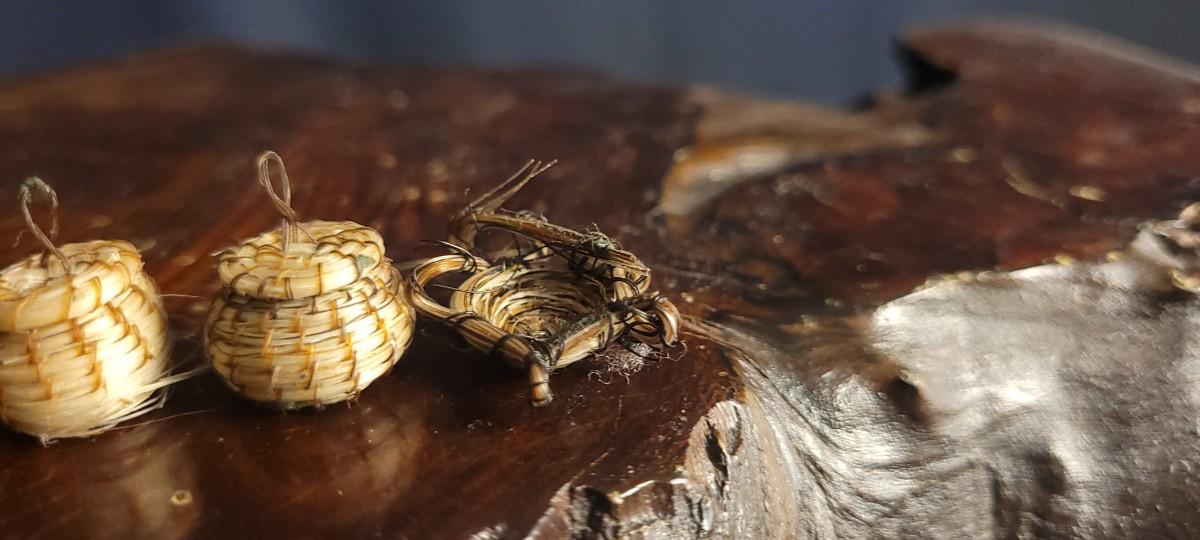 Very cute set of (3) Handmade Mad Woven Native American Trinket Baskets. The two that are similar seems to have some residue from mounting puddy but can be removed by new owner.