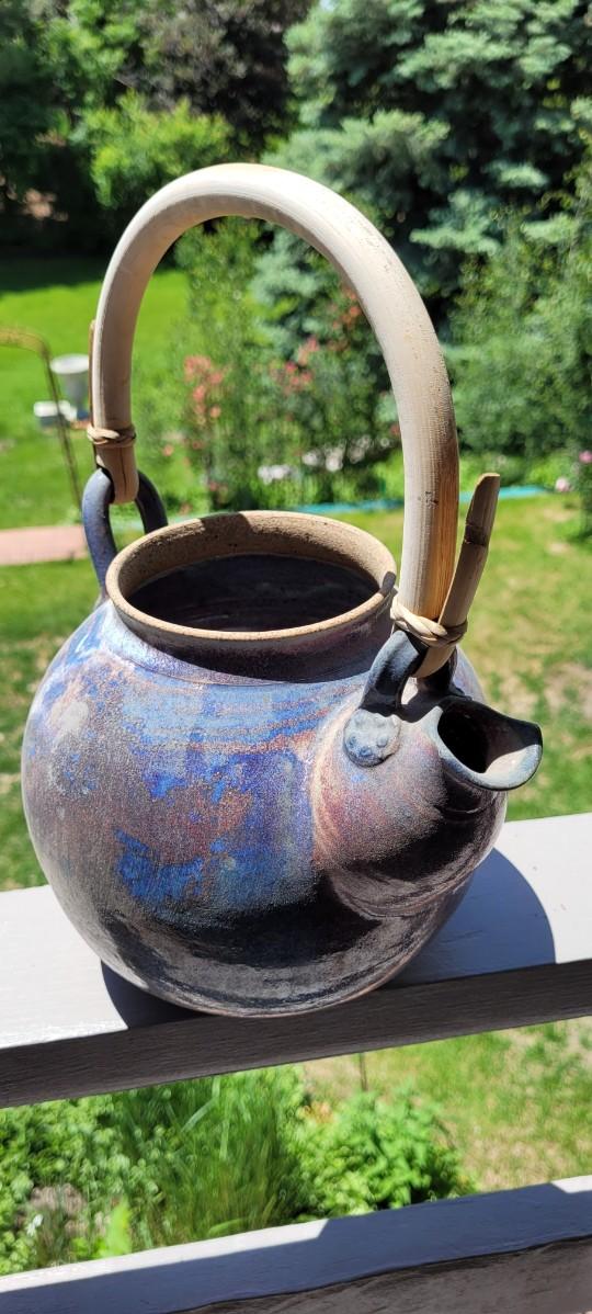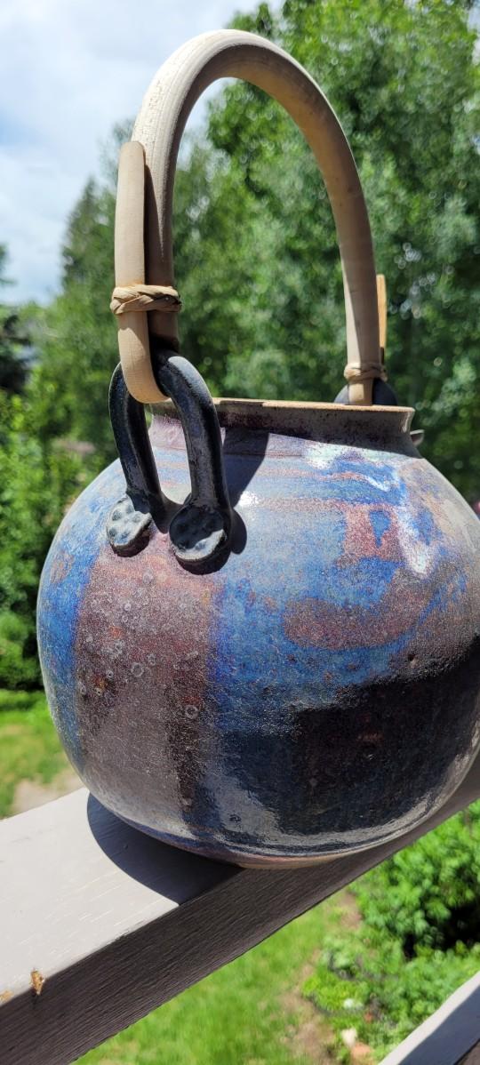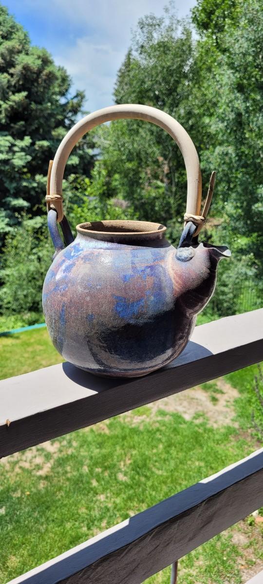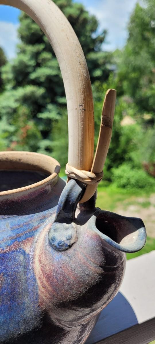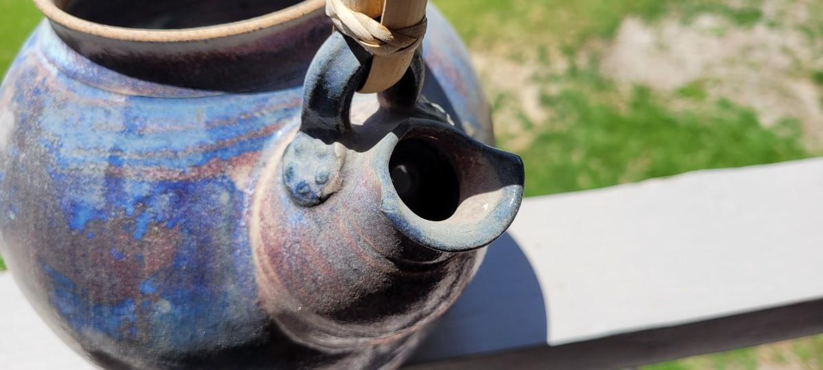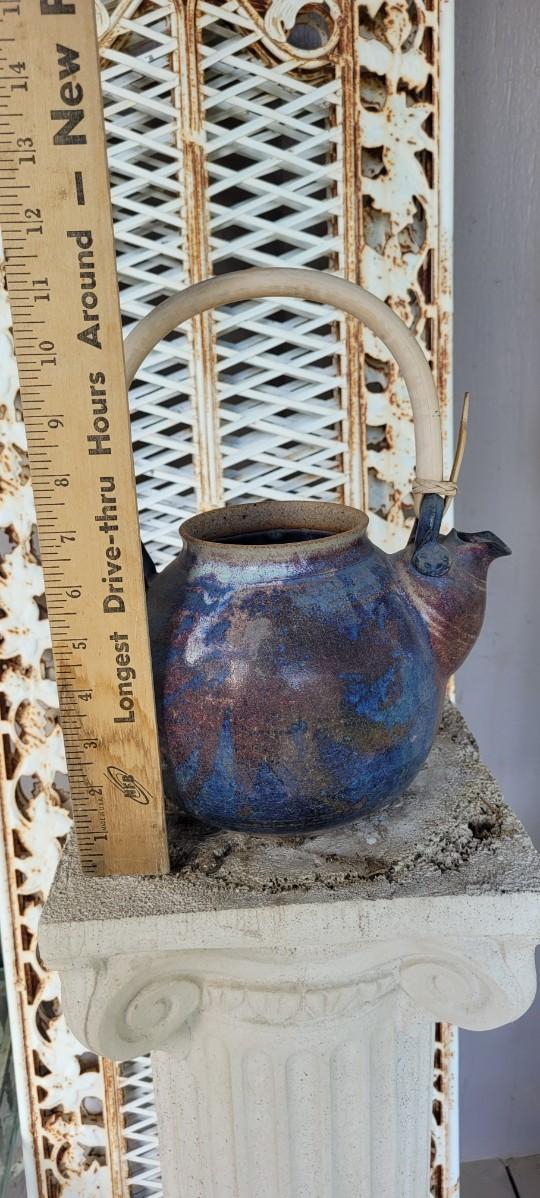 This beautiful ceramic teapot features a stunning Glaze with handmade handle accent.