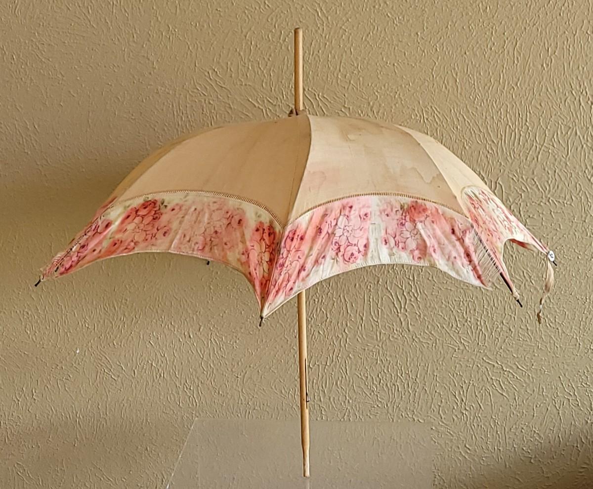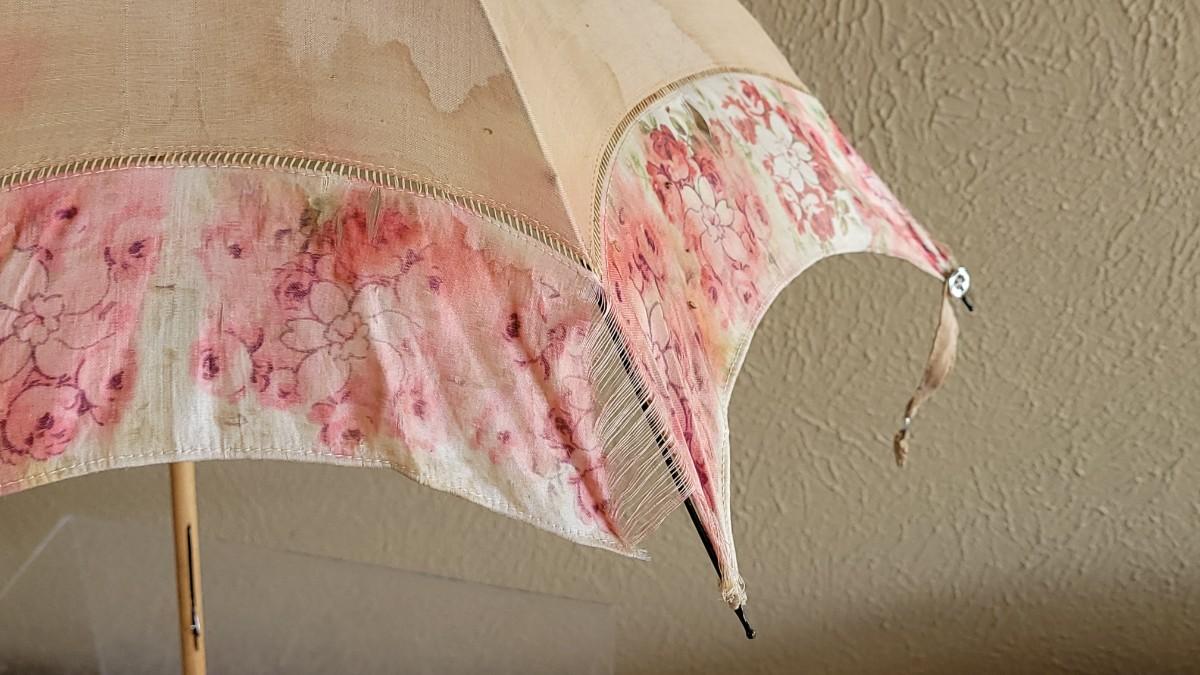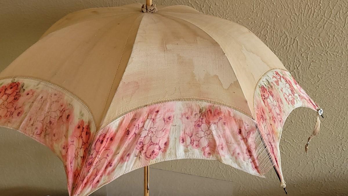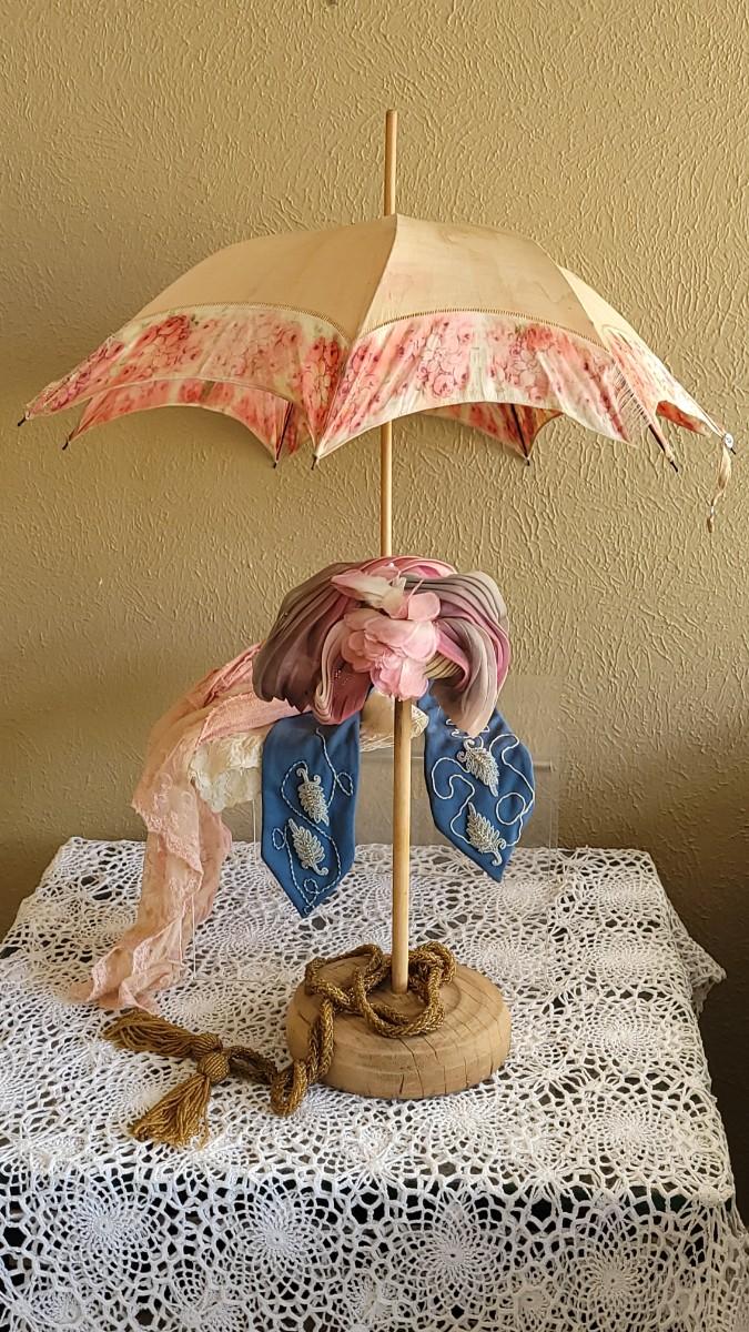 Lot 130: Antique Hat, Parasol, Scarves, Handkerchief and Belt/Necklace