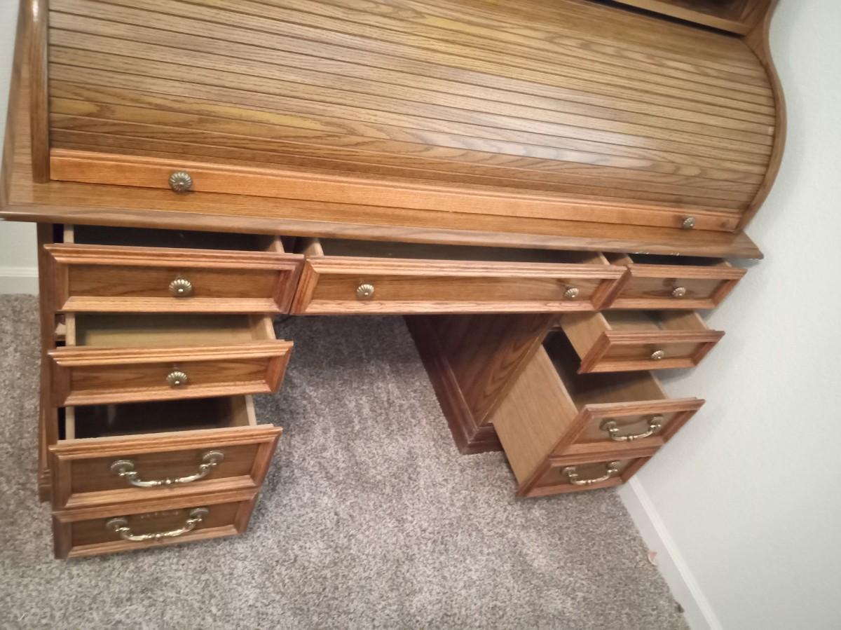 7 DRAWERS WITH 2 OF THEM BEING FILING CABINET DRAWERS