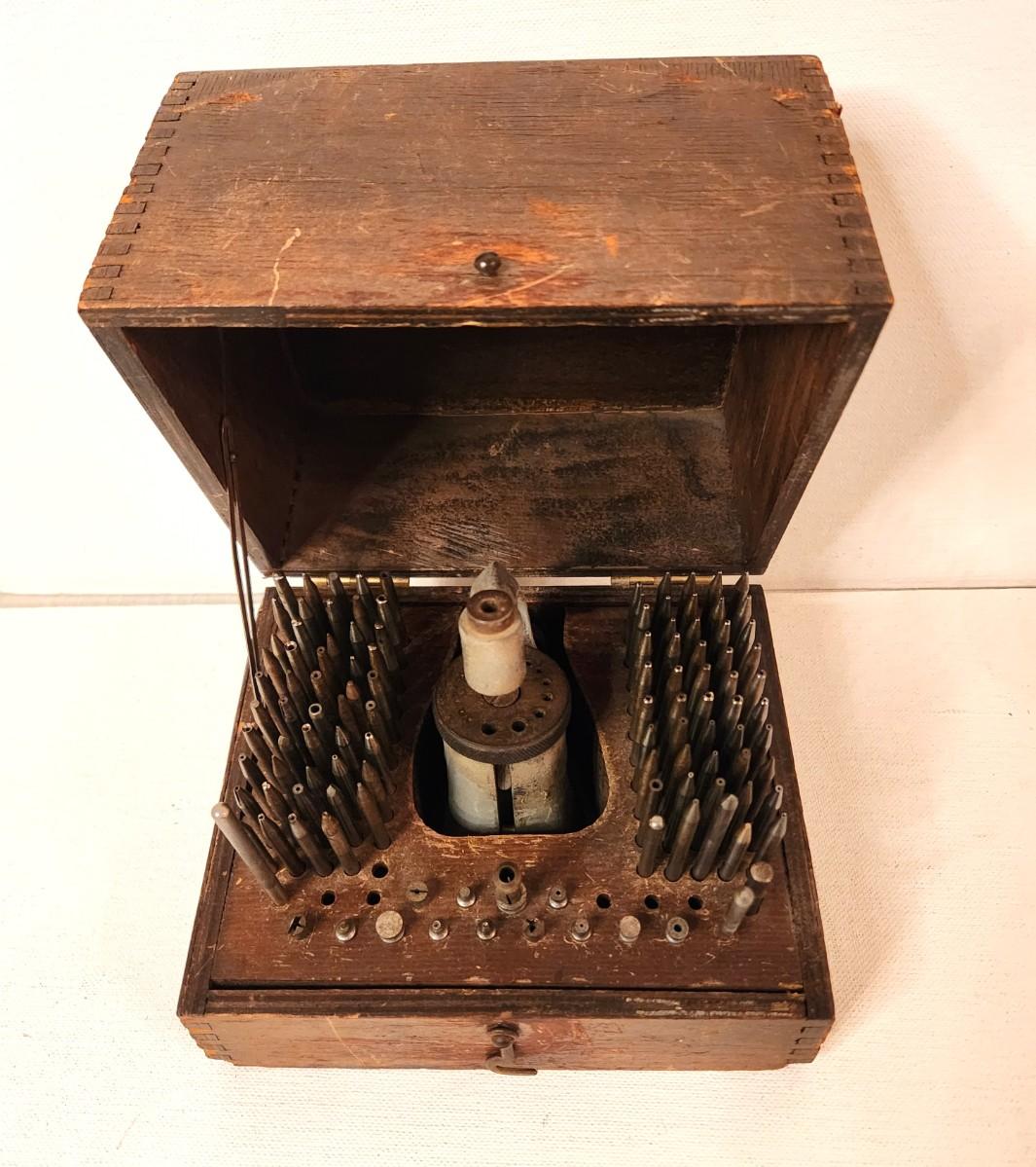 WOW! Antique Watchmaker's tool kit and staking tools in original wooden box. Looks pretty complete.