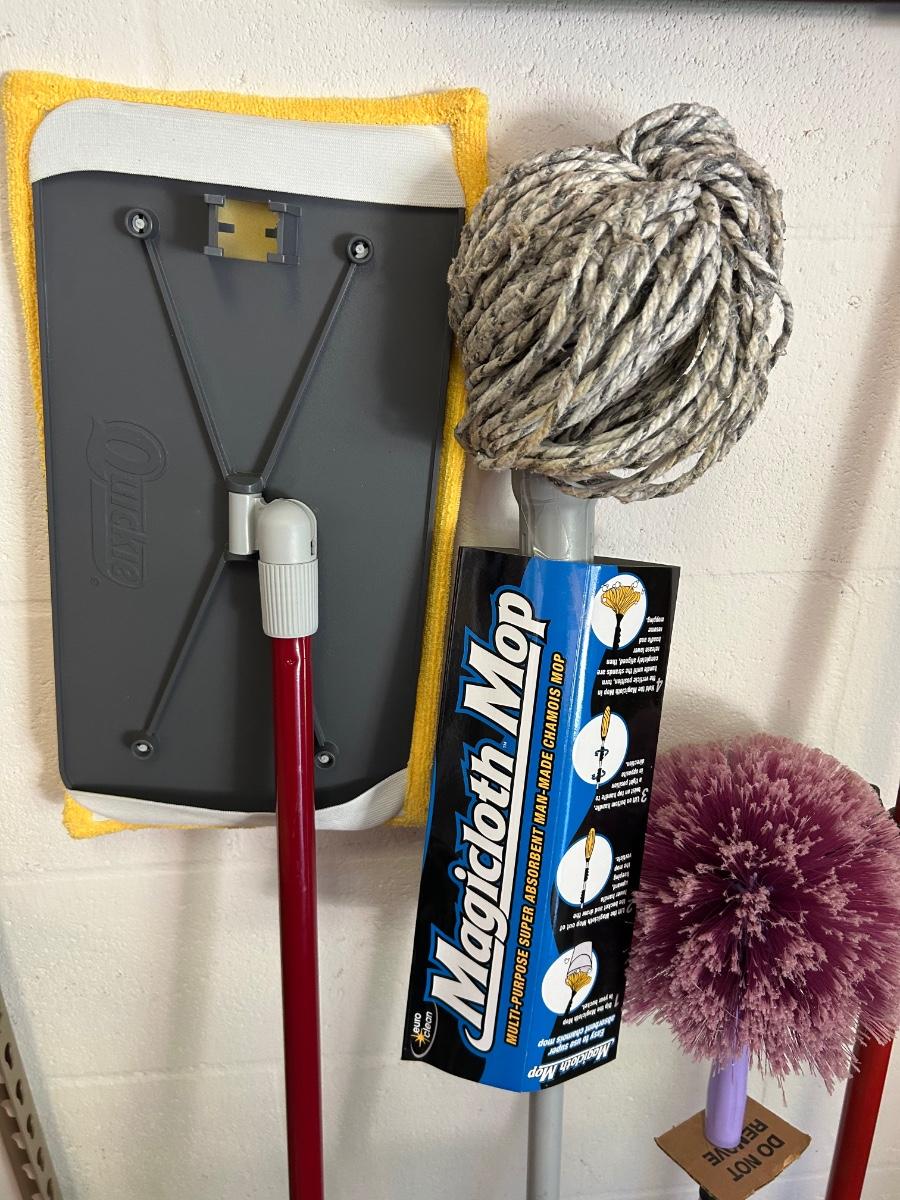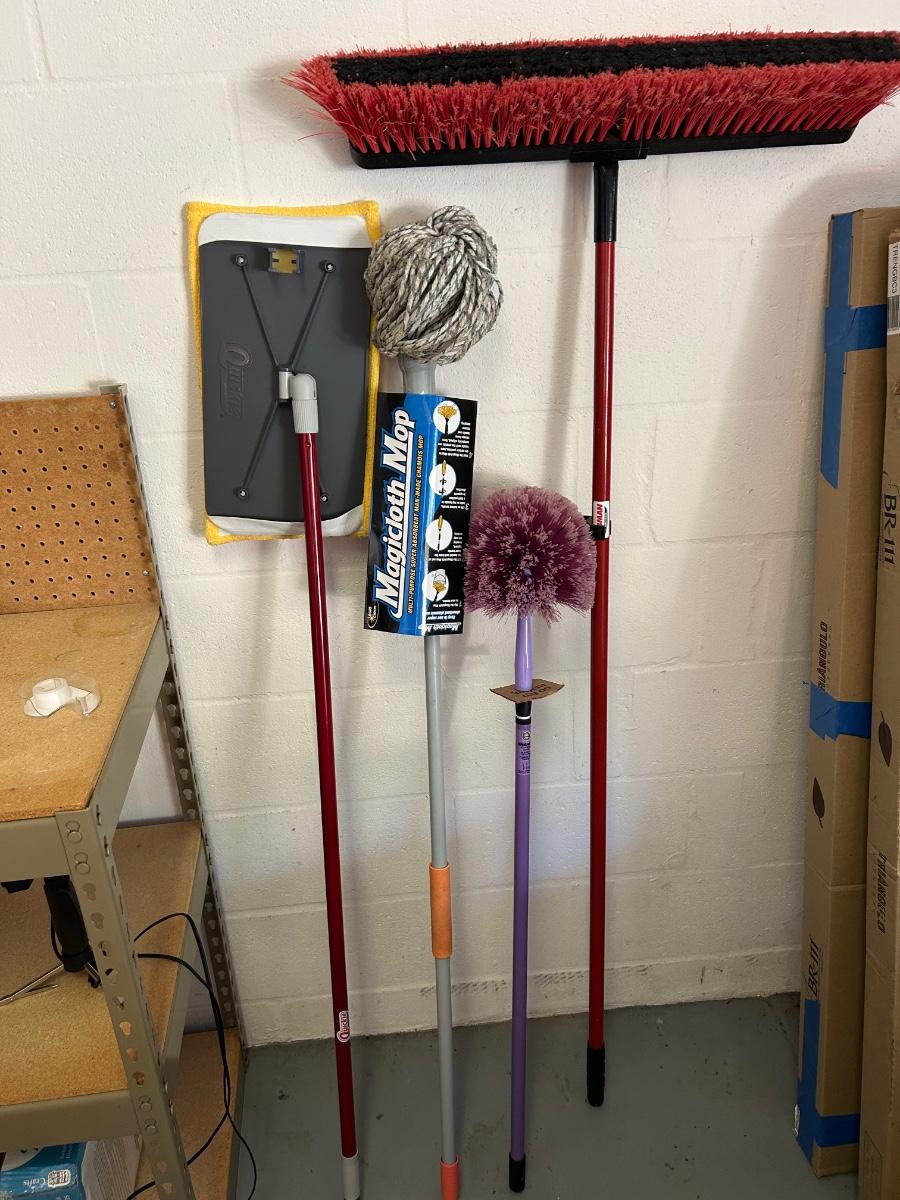Push broom, flat mop with cover, wring mop, Eave duster,