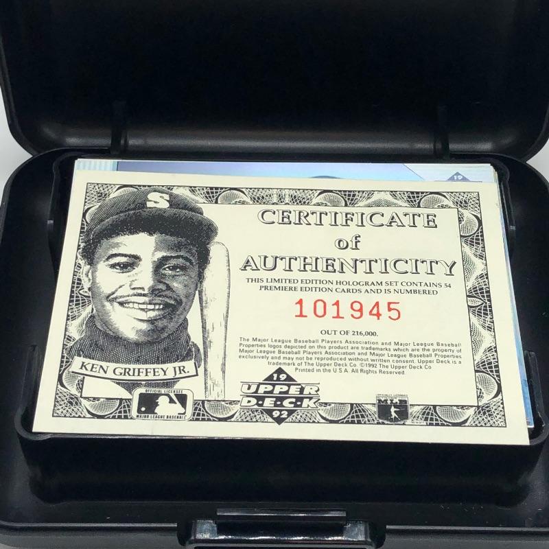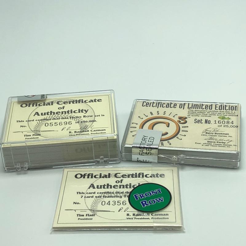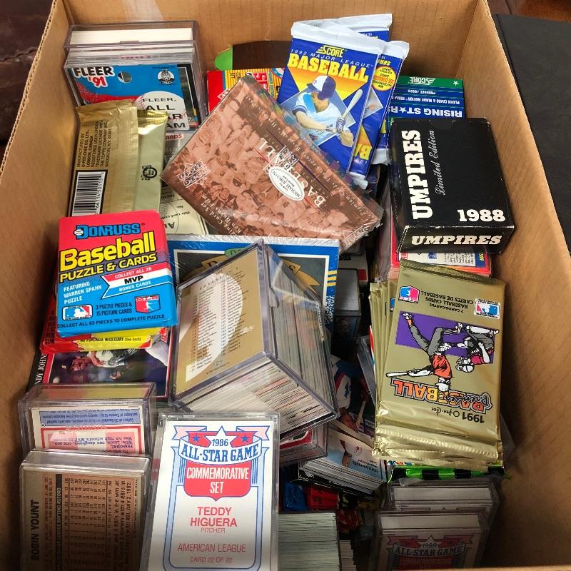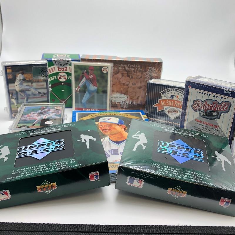 We can’t guarantee that the gum in these 1988 Topps is edible but it sure is fun. This lot has many unopened packets of cards including “˜92 Upper Deck All-Star Fanfest for the Padres, a sealed 1992 Front Row Draft Picks set, “˜91 Upper Deck Final edition Set, “˜92 Team MVP Holographic Card Set (there are two of these -one is unopened), DonRuss oversized Diamond King card set and an unopened trading card set based on The Ken Burns Film. There are three sets that have Certificates of Authenticity and tons of boxes of opened sets of cards. See photos.