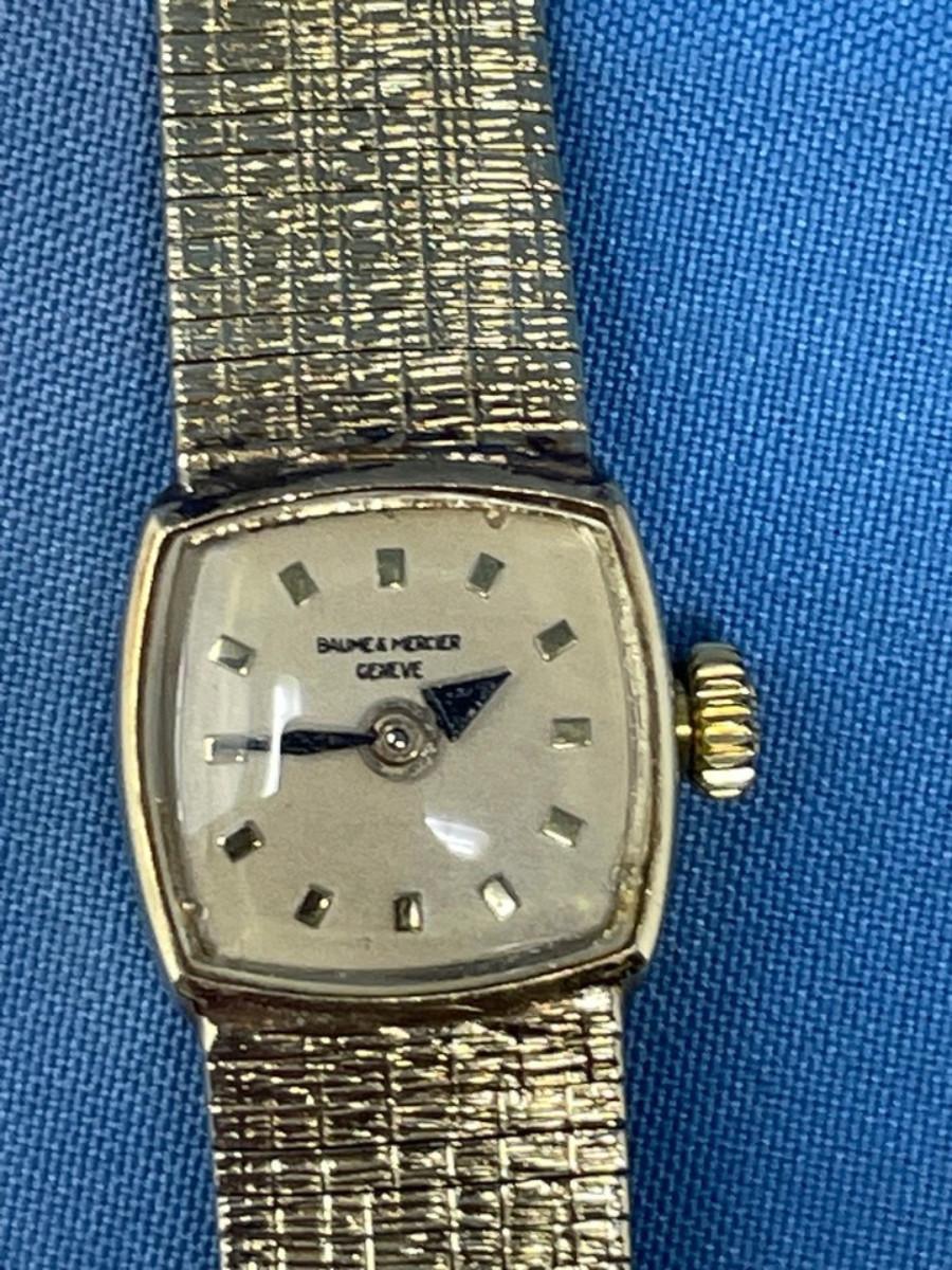 lot 130 Baume Mercier 14K yellow gold small face ladies watch w/ 14K band