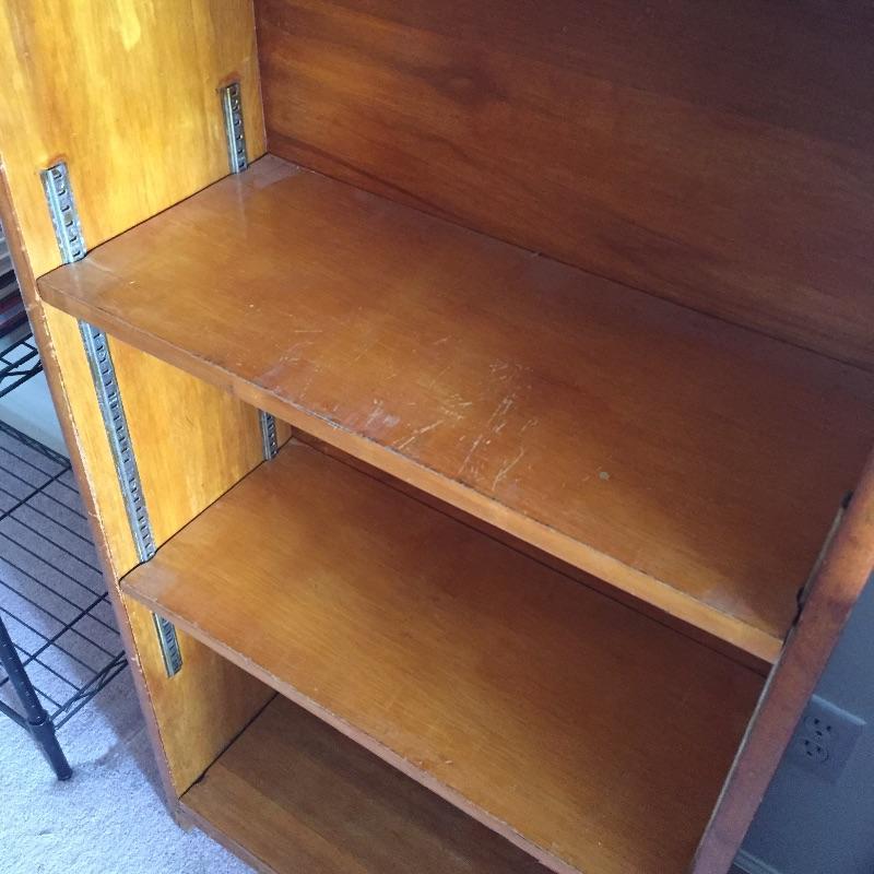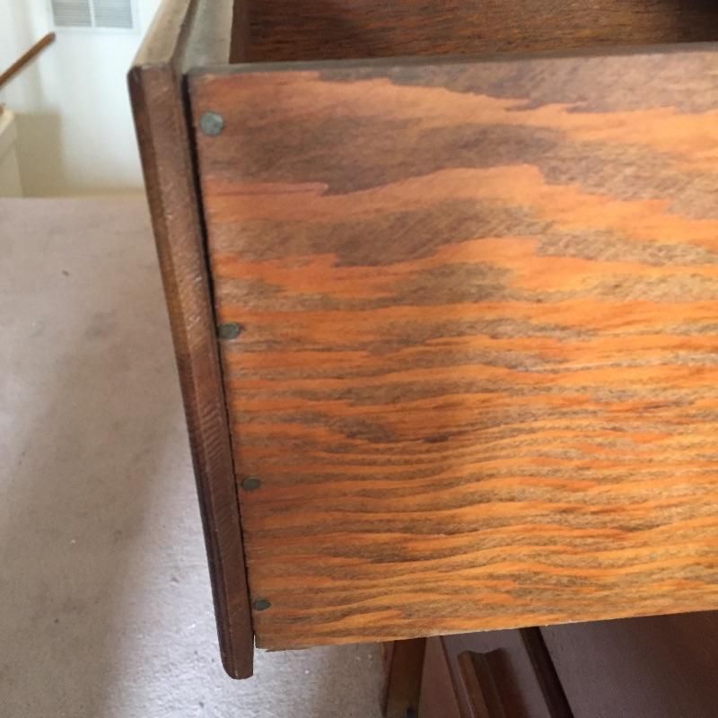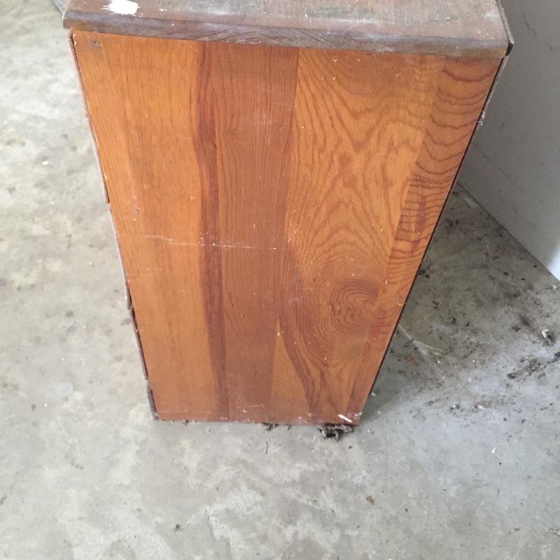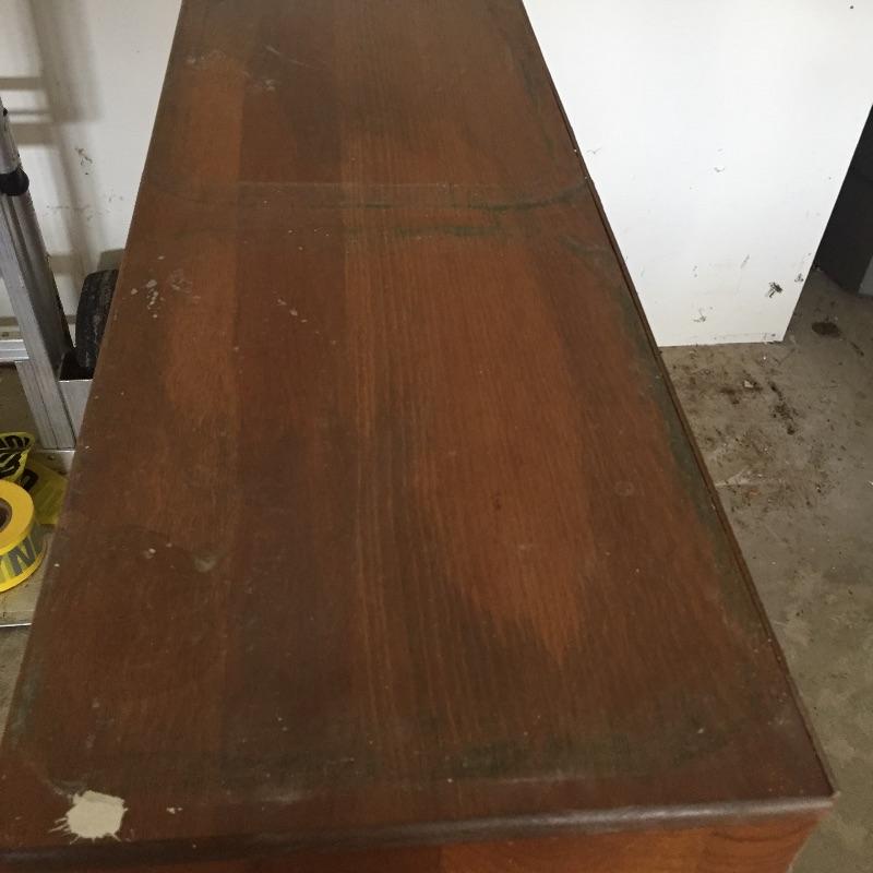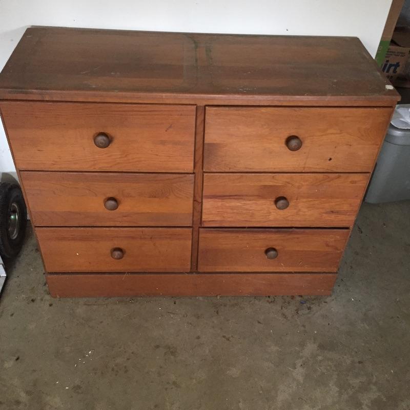 Two chest of drawers and a small bookcase. These are not a matching set. Bookcase measures 11” x 24.5” x 49”. Four drawer chest measures 14” x 18” x 36”. Six drawer chest measures 13” x 36” x 29” and has blemishes on top - see pictures.