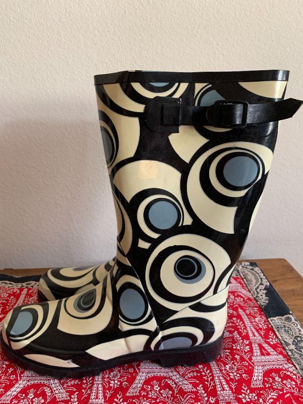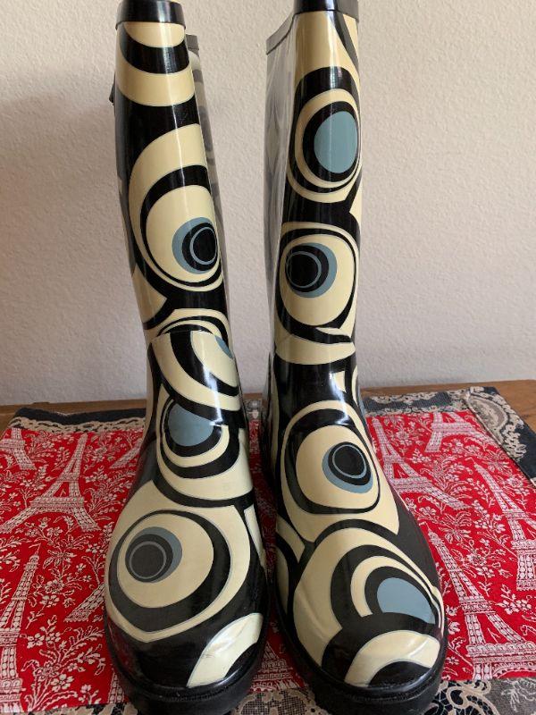 LOT 130  POP ART!  CIRCLE DESIGN RAIN BOOTS SIZE 9