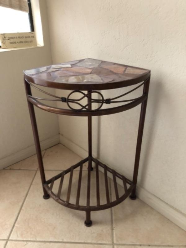 Lot 130. Corner table with tile top (24” x 13”)---WAS $45““NOW $33.75