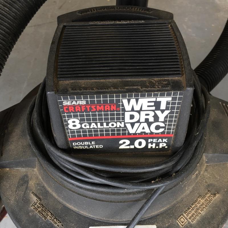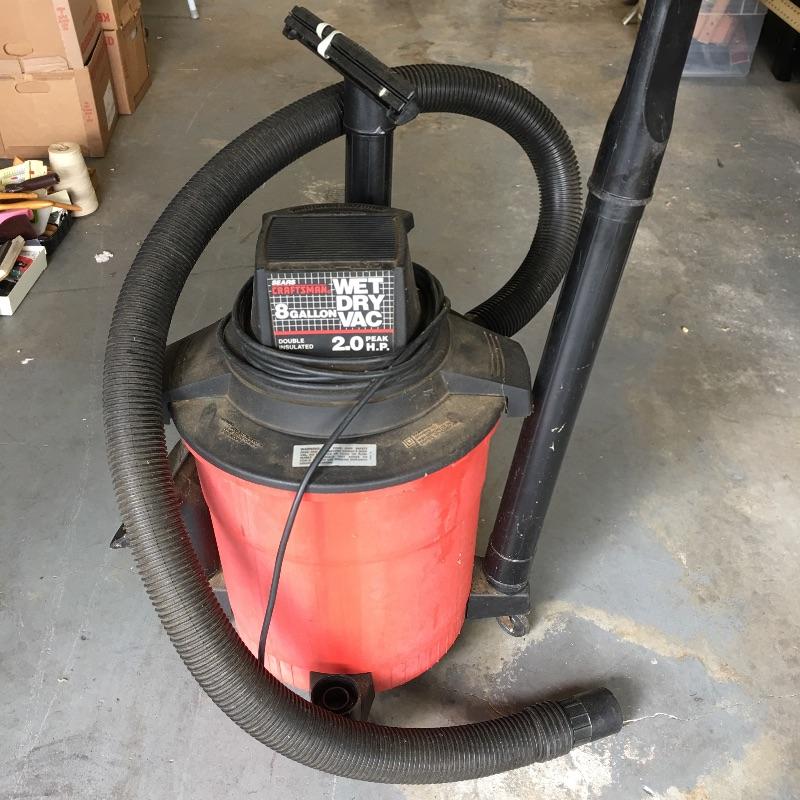 A must have for any garage and/or workshop, this Craftsman Eight gallon wet dry Vac comes with hose and attachments.