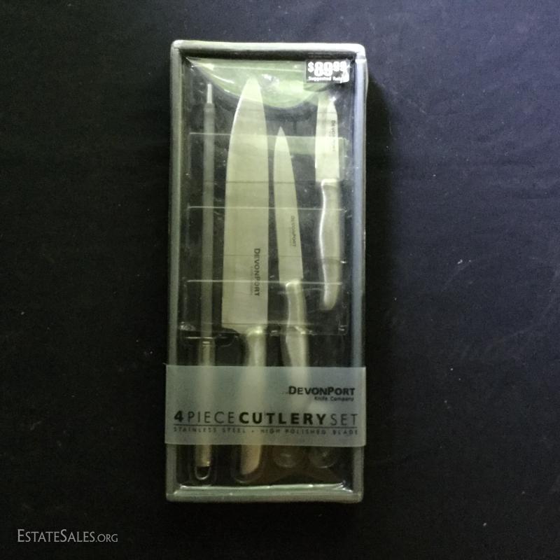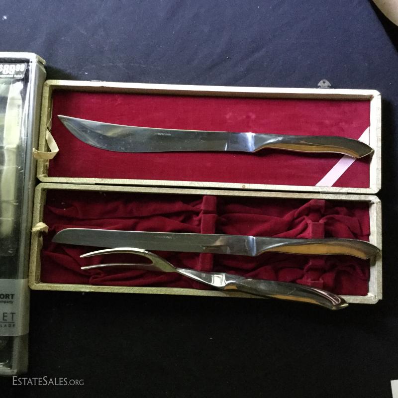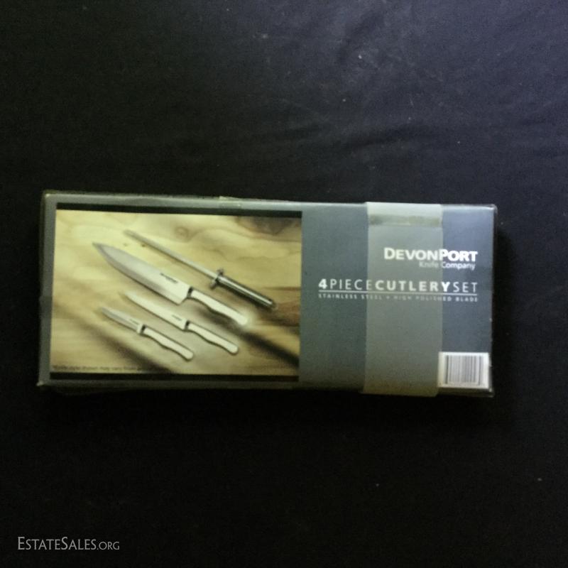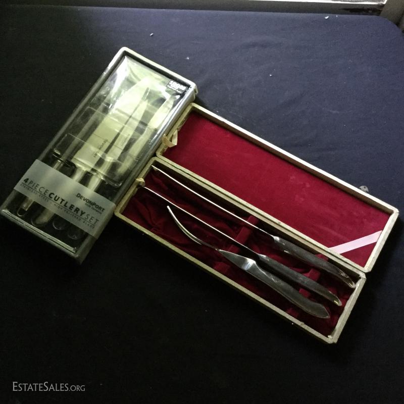 New in box, De Von Port knife set and a Stainless Steel knife set in original presentation box. Shipping available or Local pick up in Saluda, NC