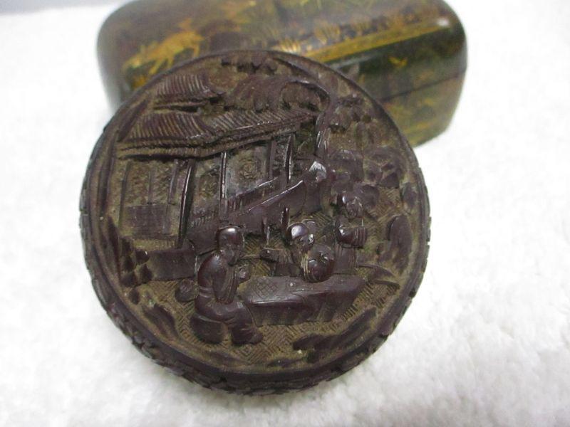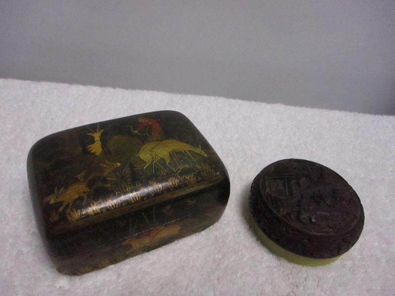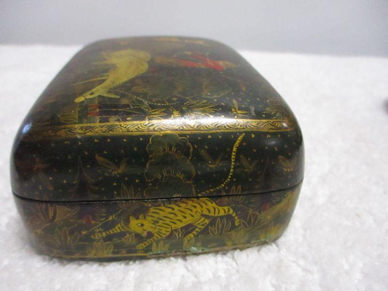 Lot `130 - Decorative Trinket Wooden Box & Carved Topper